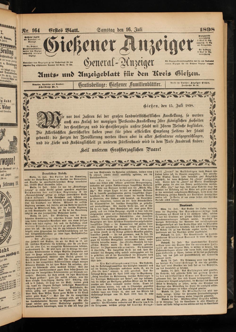 Gießen, den 15. Zuki 1898.