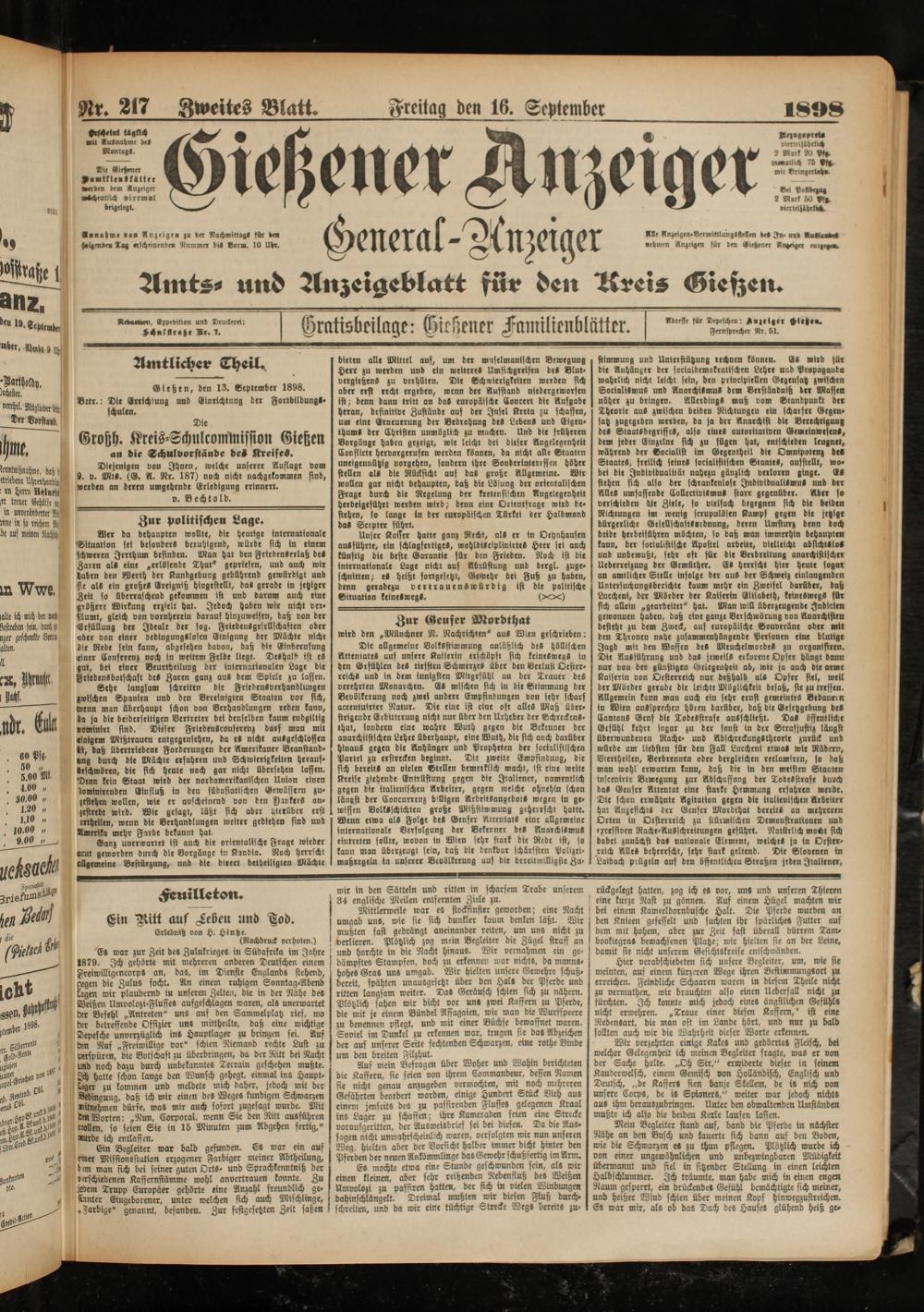 Adeefle für Depeschen: Anzeiger -ietz»».