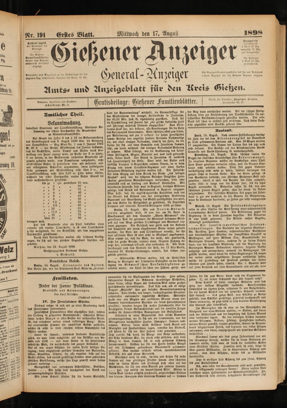 Die Gießener A-mikieudkäiter werden dem Anzeiger wöchentlich viermal beigelegt.