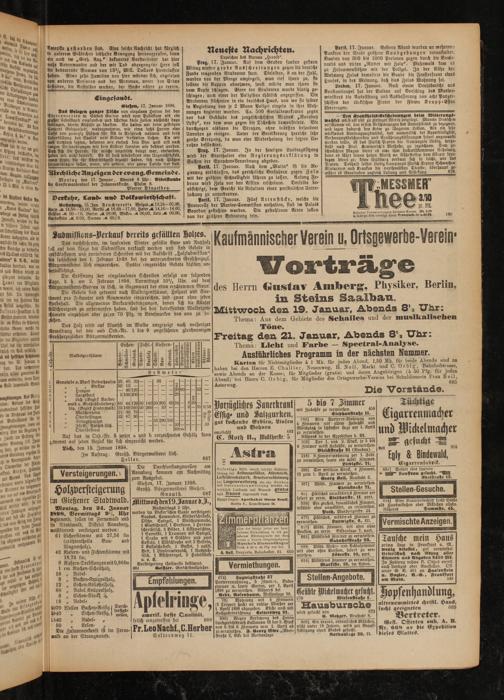 Mittwoch den 19. Januar, Abends 8% Uhr: