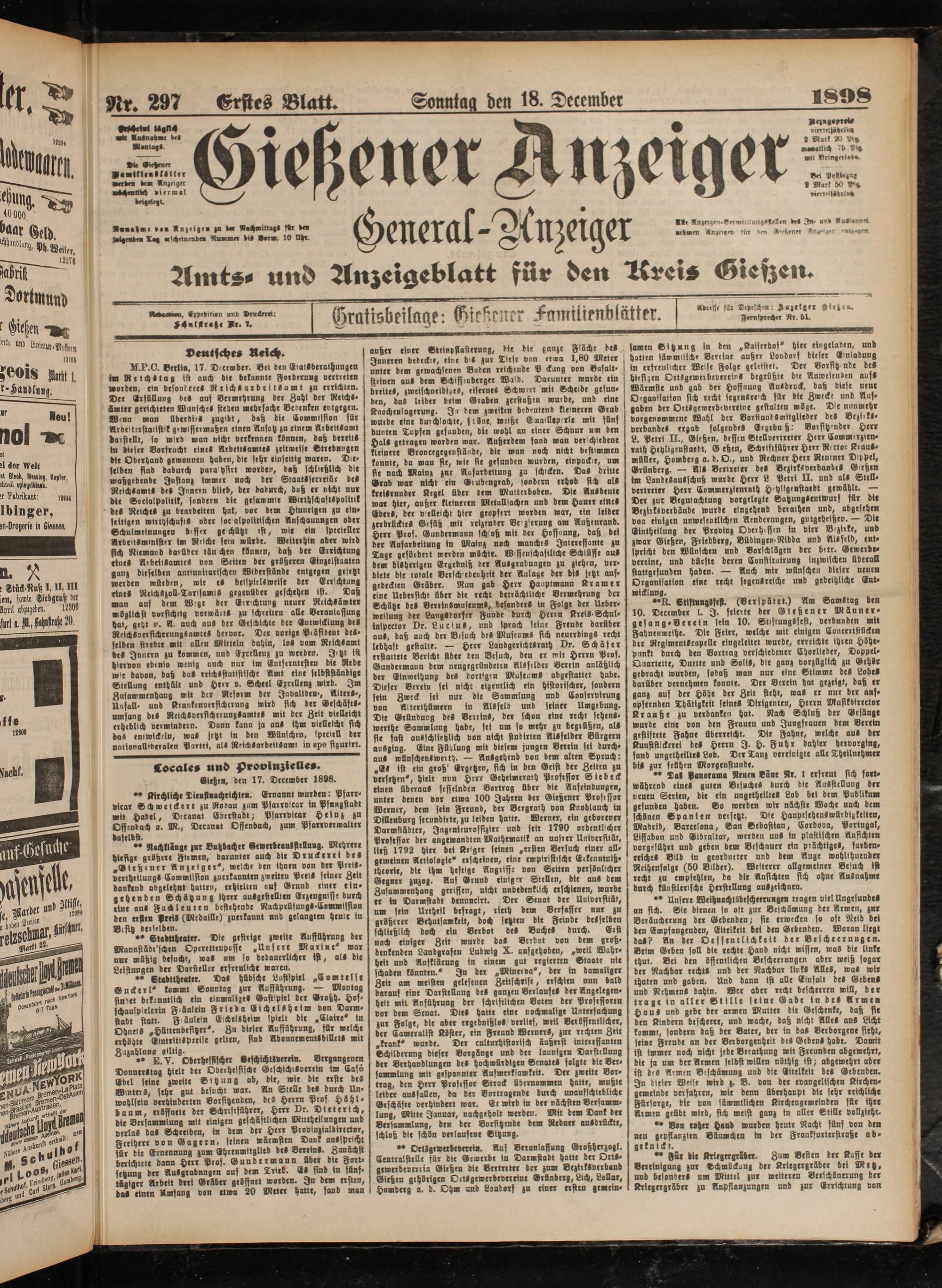 Gieße«, den 17. December 1898.