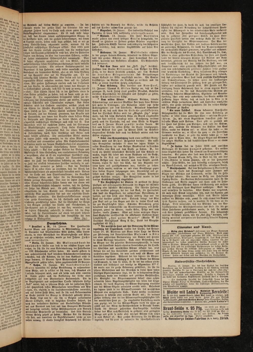 Braut-Seide v. 95 Pfg. iouile schwarze, weiße unb farbige Hennederg Seide von 75 Pfg. bis Mk. 18 65 per Met. — in den modernsten Geweben, Farben und DesfinS. Ao Private porto- und steuerfrei Ins Haas. Muster umgehend. . 9194 6. Hennebergs Seiden-Fabriken d k «#«.), Zürich.
