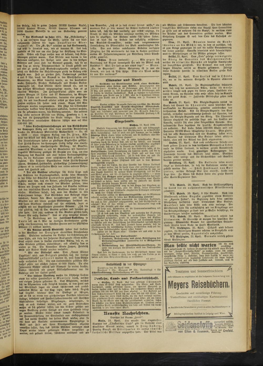 WB Madrid, 20. April, 8 Uhr Abend». Nach dem Ministerrath erklärte Sag ast a gegenüber einem Vertreter der „Agencia Fobra", die Regierung habe keine amtliche Mittheilung hinsichtlich eines Ultimatum« Mac Kinleys. Woodford habe seine Päffe noch nicht verlangt. Der Ministerrath habe sich au«schließlich mit der K.iegSsrage und den Kriegszurüstungeo zu Land und zu Waffer beschäftigt, die Entscheidungen indeffen Vorbehalten.