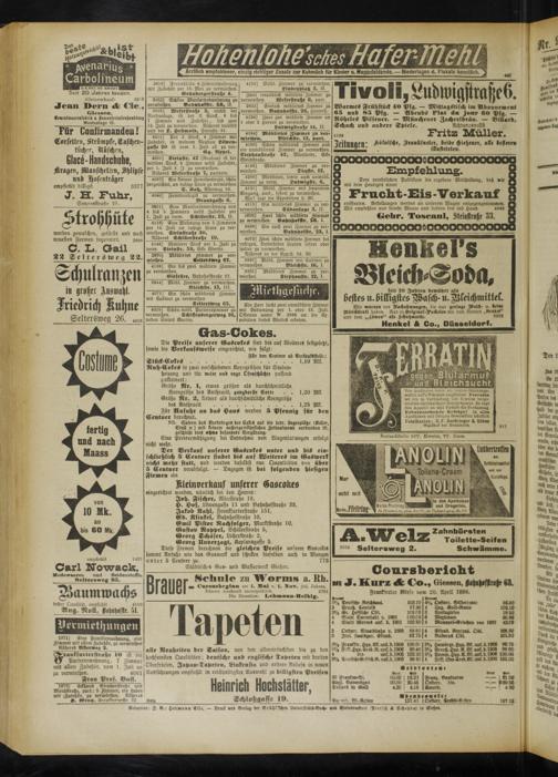 Frankfurter Börse vom 20. April 1898.