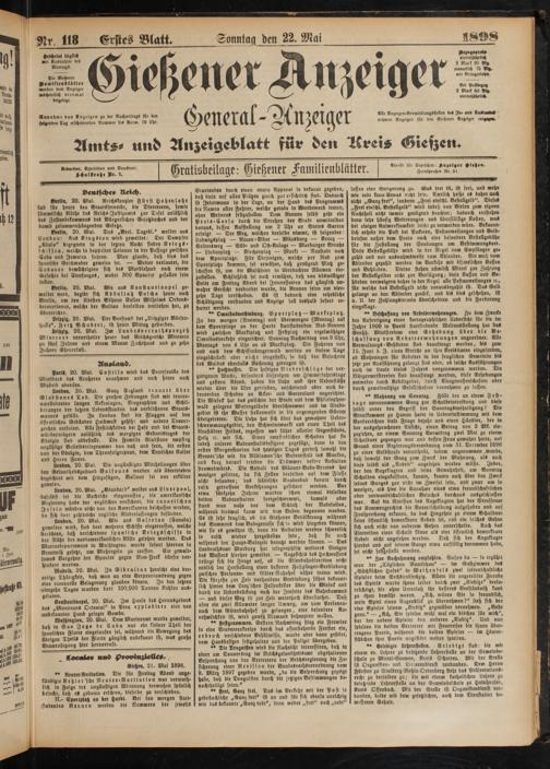 Nr. 118 Erstes Blatt. Sonnta« den 22. Mai 8S9S