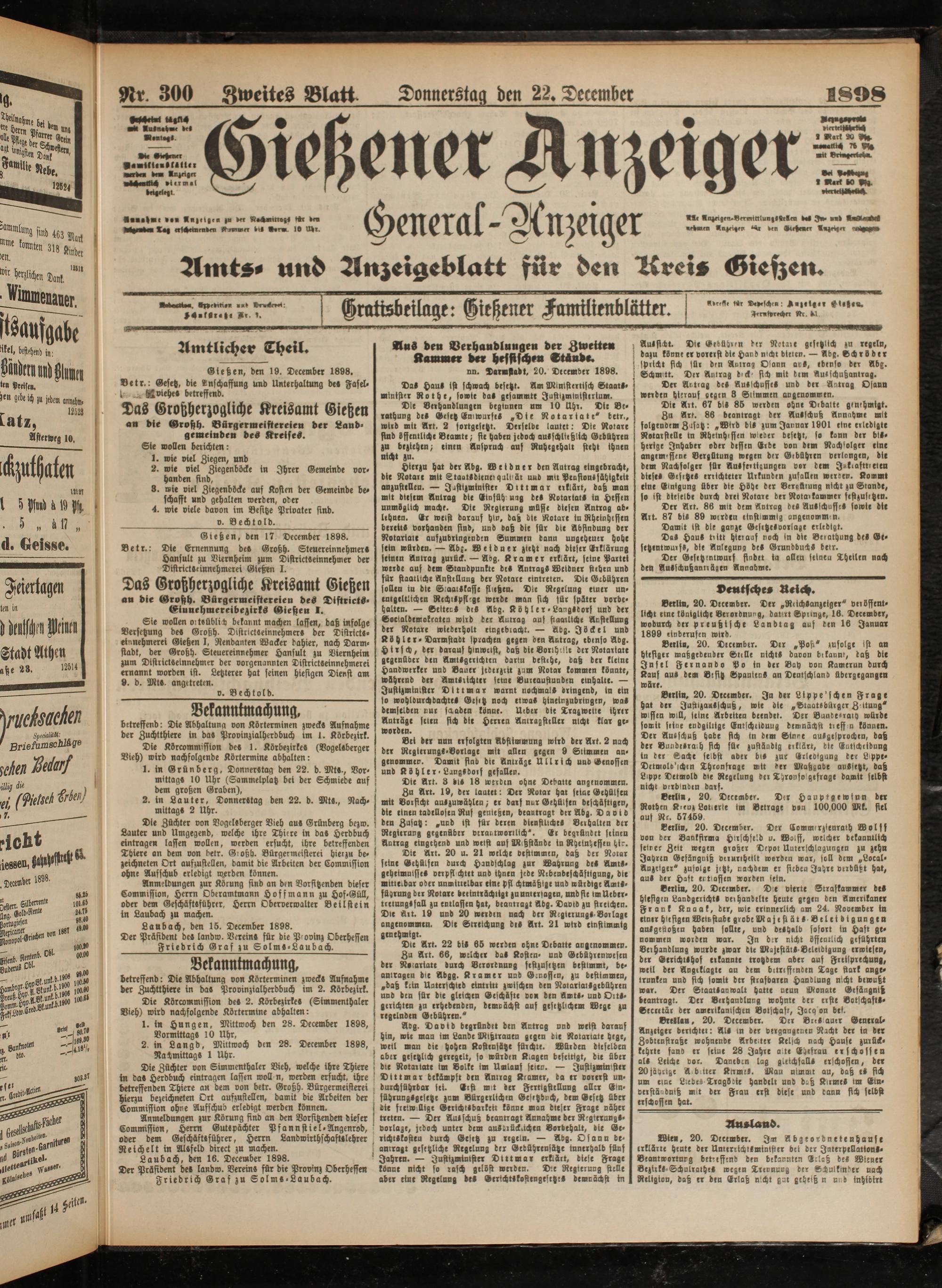 Nr 300 Zweites Blak Donnerstag den 22. December 1898