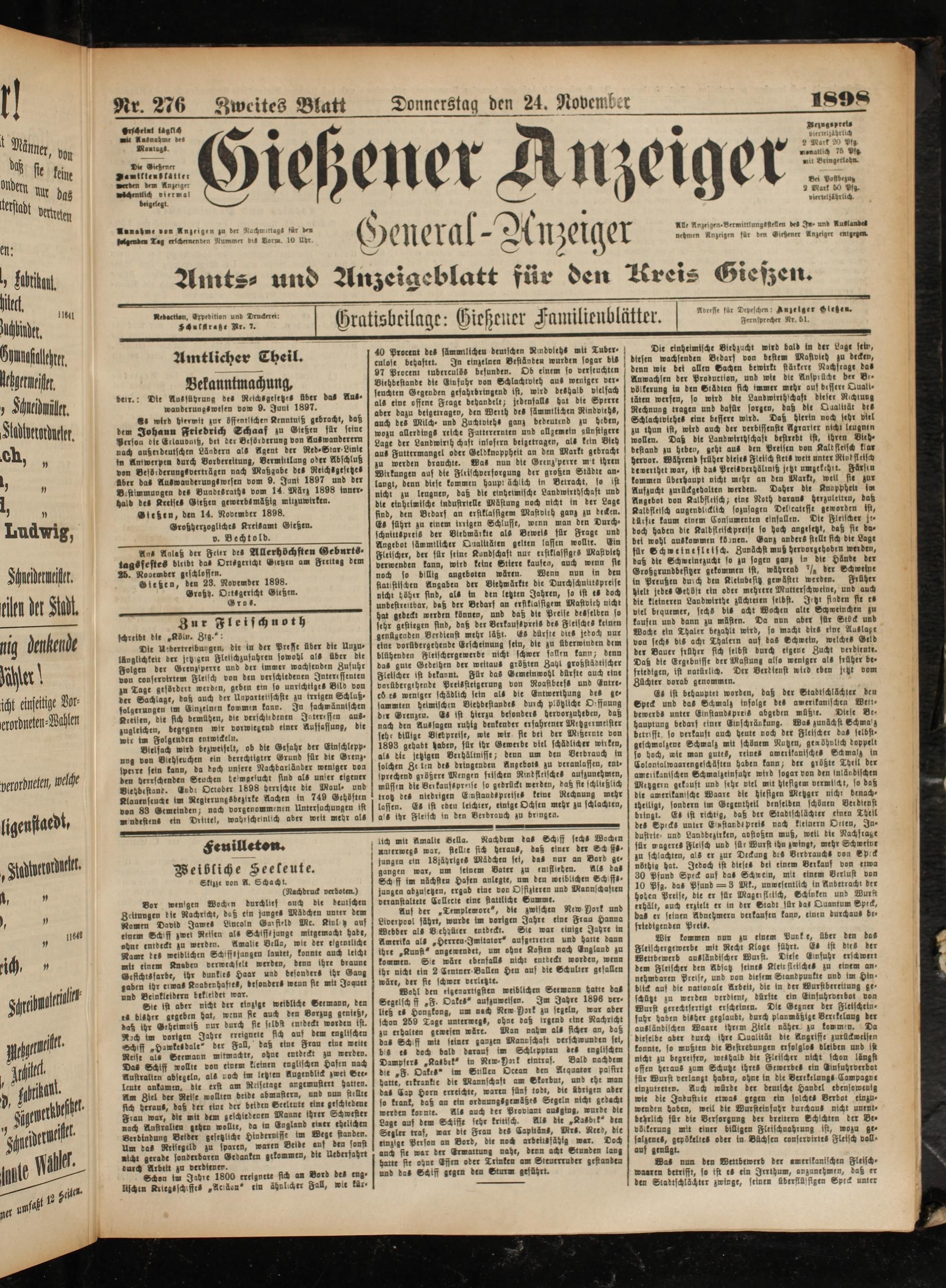 Nr 276 Zweites Blatt Donnerstaq den 24. November