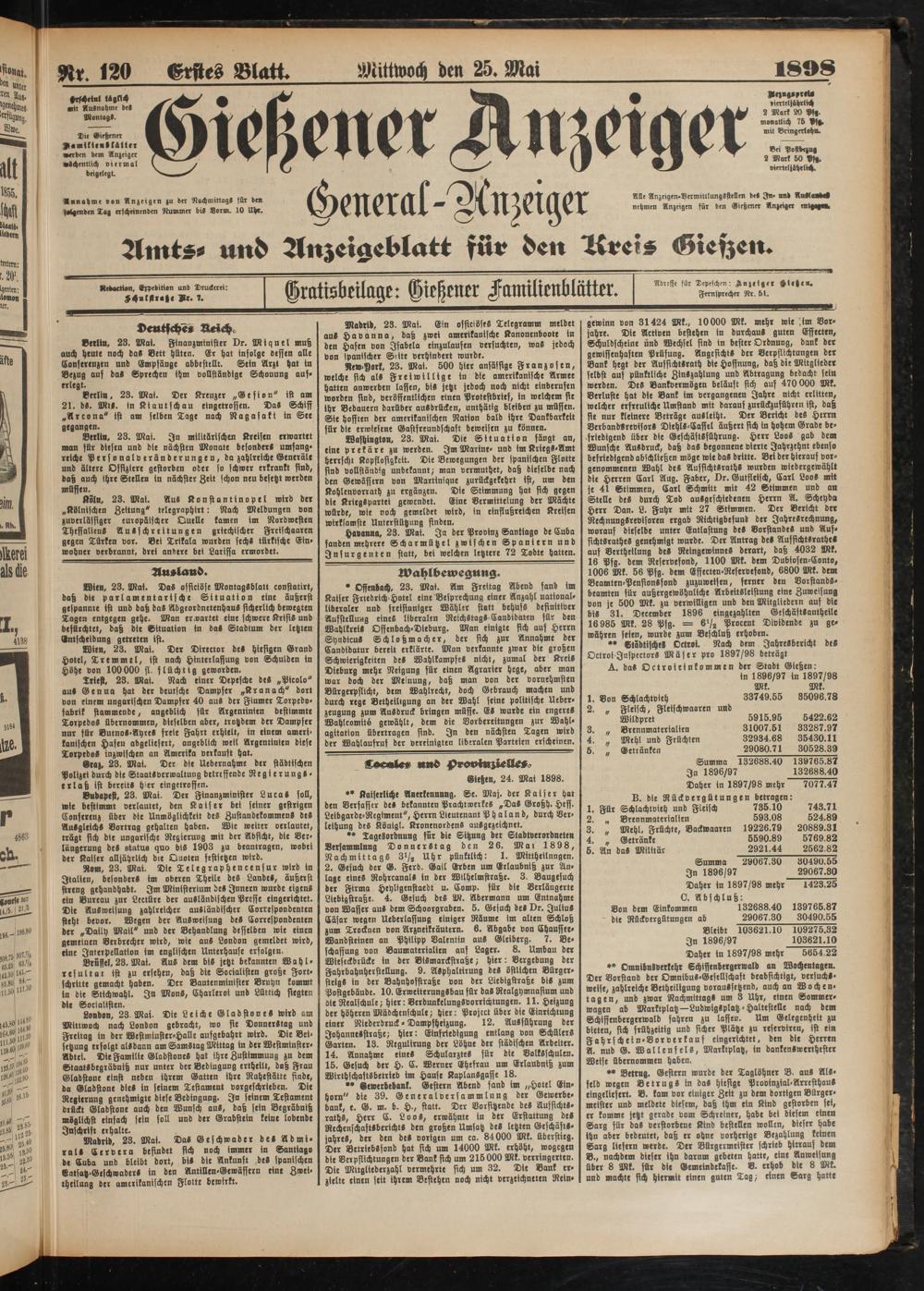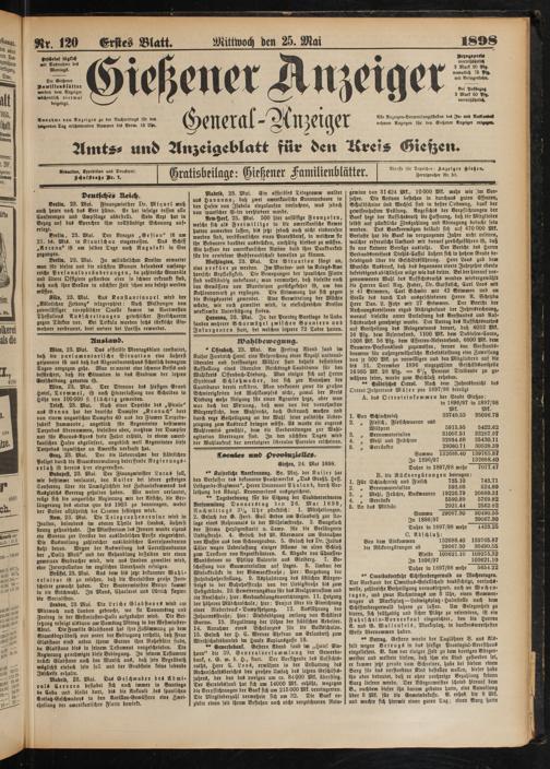 Dir Gießener WamikiensttLIter »erden dem Anzeiger Wöchentlich viermal beigelrgt.