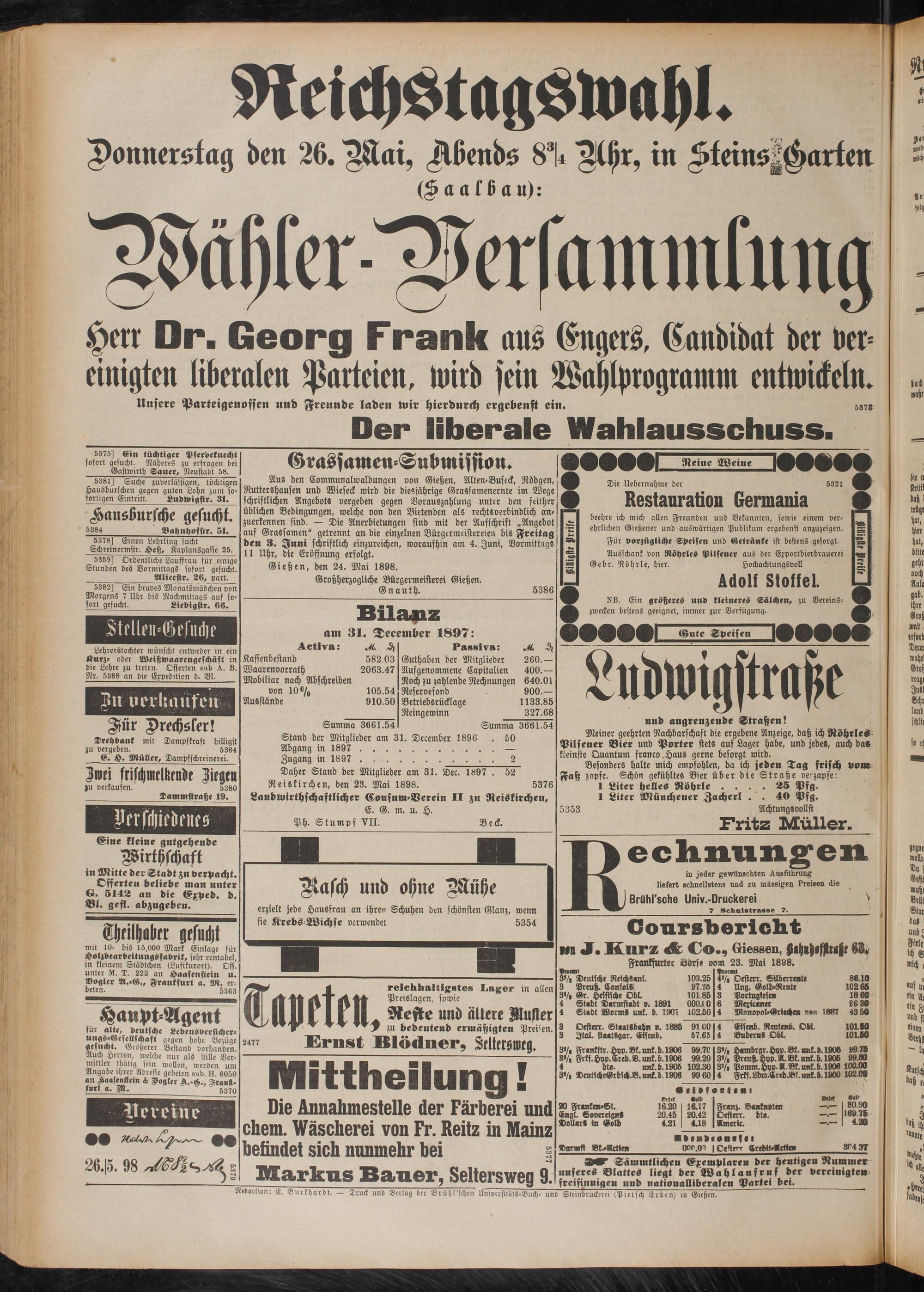 Herr Dr. Georg Frank aus Engels, Candidat der vereinigten liberalen Parteien, wird sein Wahlprogramm entwickeln.