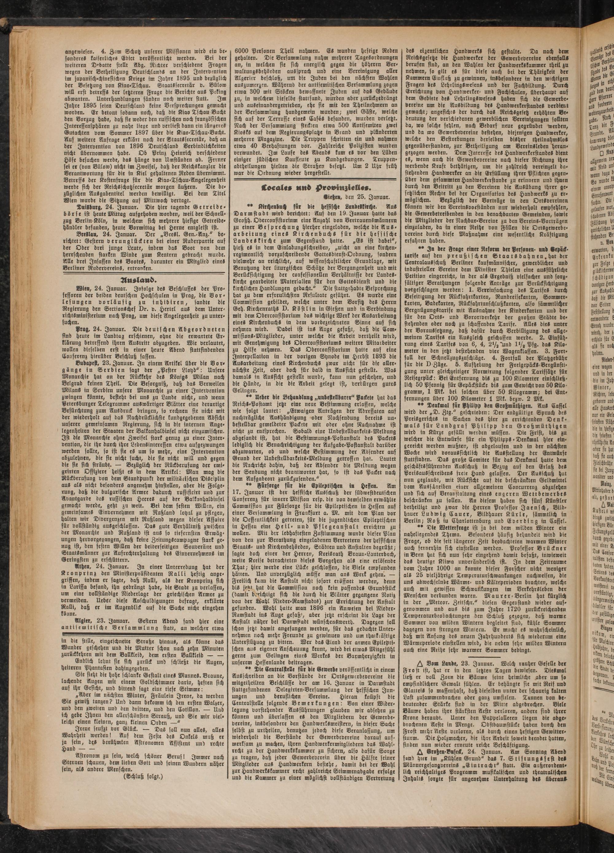 Algier, 23. Januar. Gestern Abend sand hier eine antisemitische Versammlung statt, an welcher etwa