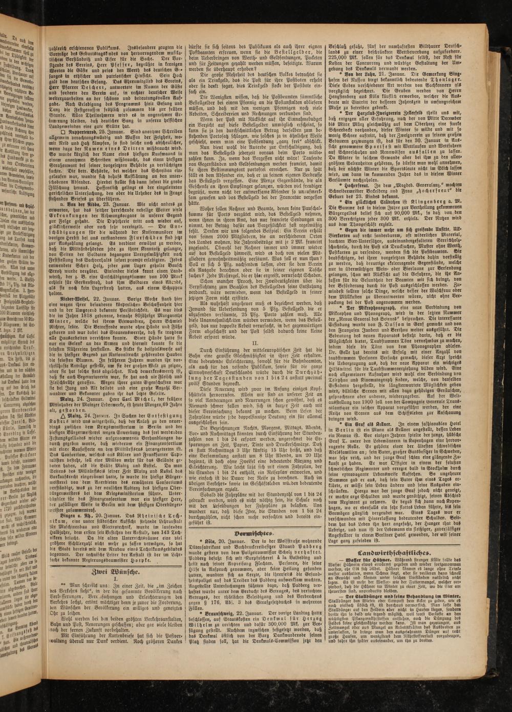 Durch Einführung der mitteleuropäischen Zeit hat die Bahn eine gewisse Gleichmäßigkeit in ihrer Zeit erhalten. Eine bedeutende Erleichterung, sowohl für die Bahnbeamten, als auch für das reifende Publikum, sowie für die ganze Einwohnerschaft Deutschlands würde durch die Durch zäh- lung der Tagesstunden vonl bis24 anstatt zweimal zwölf Stunden bezweckt.