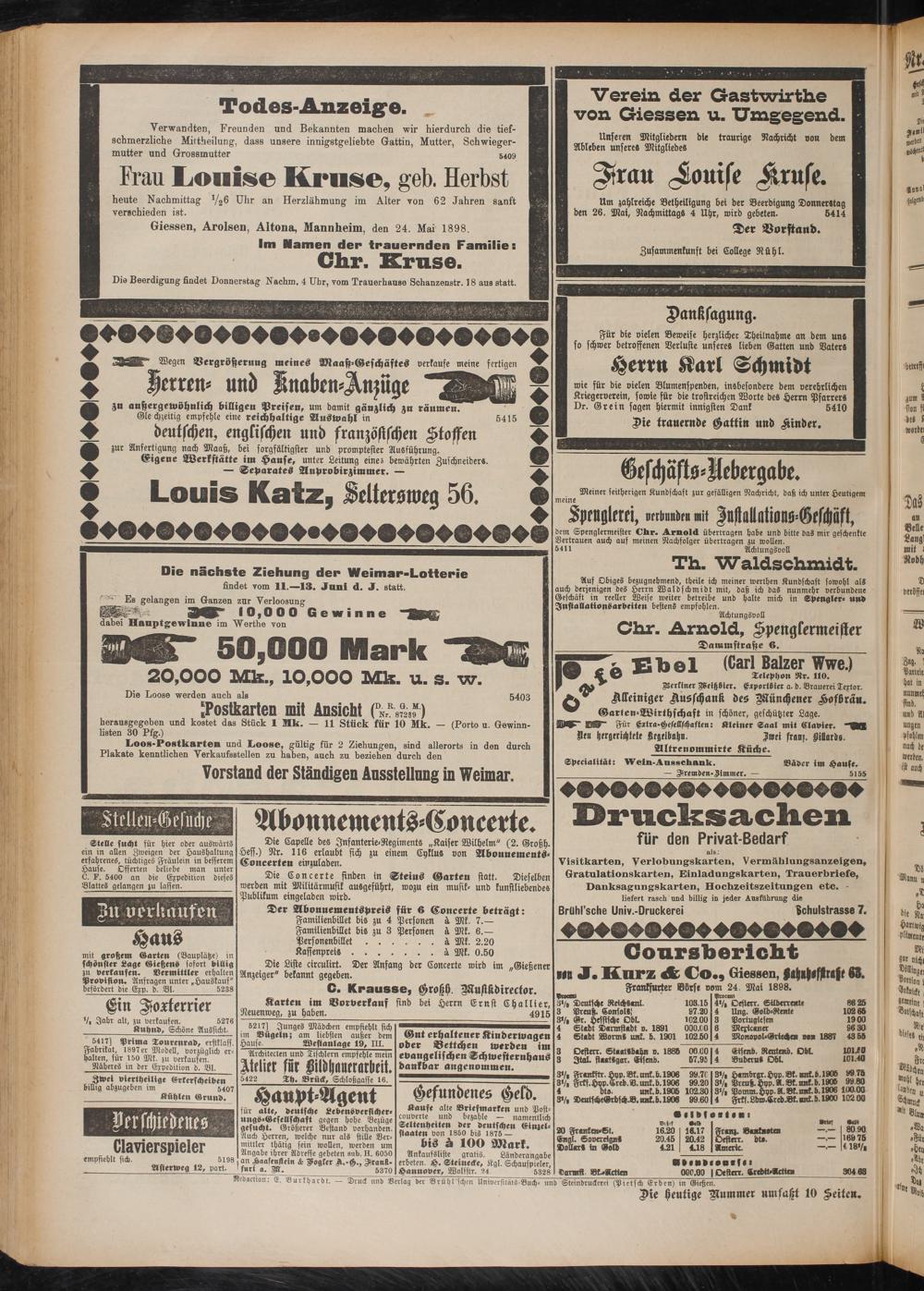 Giessen, Arolsen, Altona, Mannheim, den 24. Mai 1898.
