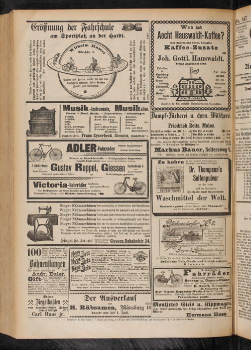 Singer Ko. Act.-Kes. ÄSinna: Giessen, Bahnhofstr. 214.