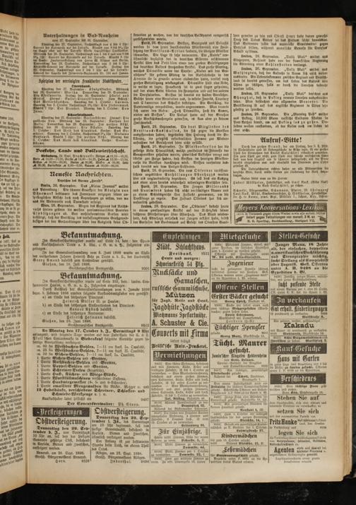 Dien-lag den 27. September, Nachmittag« von 4 bi« 6 Uhr: 6oncert der HurceptUc euf der Terrasse. Abends von 8biS SV»Uhr im Seele oder auf der Terrasse Werke französischer lonfünfller. Mnlwoch den 28. September, dtachmtUagS von 4 dis 6 und von 8 bis 9Vi Uhr: Loncert der ÄurcapeDe euf der Terrasse. Abends 8 Uhr Im Sealt: Zaubervorftellung von Herrn W. Röhner au9 Berlin. DonnerSteg den 29. September, Rech mitte aS von 3 btS 6 Uhr: Ldschisd» Conesrt der Kurcapelle auf der Terrasse. Freitag den SO. September, NachmiltagS von 3 bl» 7 Uhr euf der Terrasse: Loncert der Capelle de» Infanterie-Regiment» Nr. 166 aus Hanau.