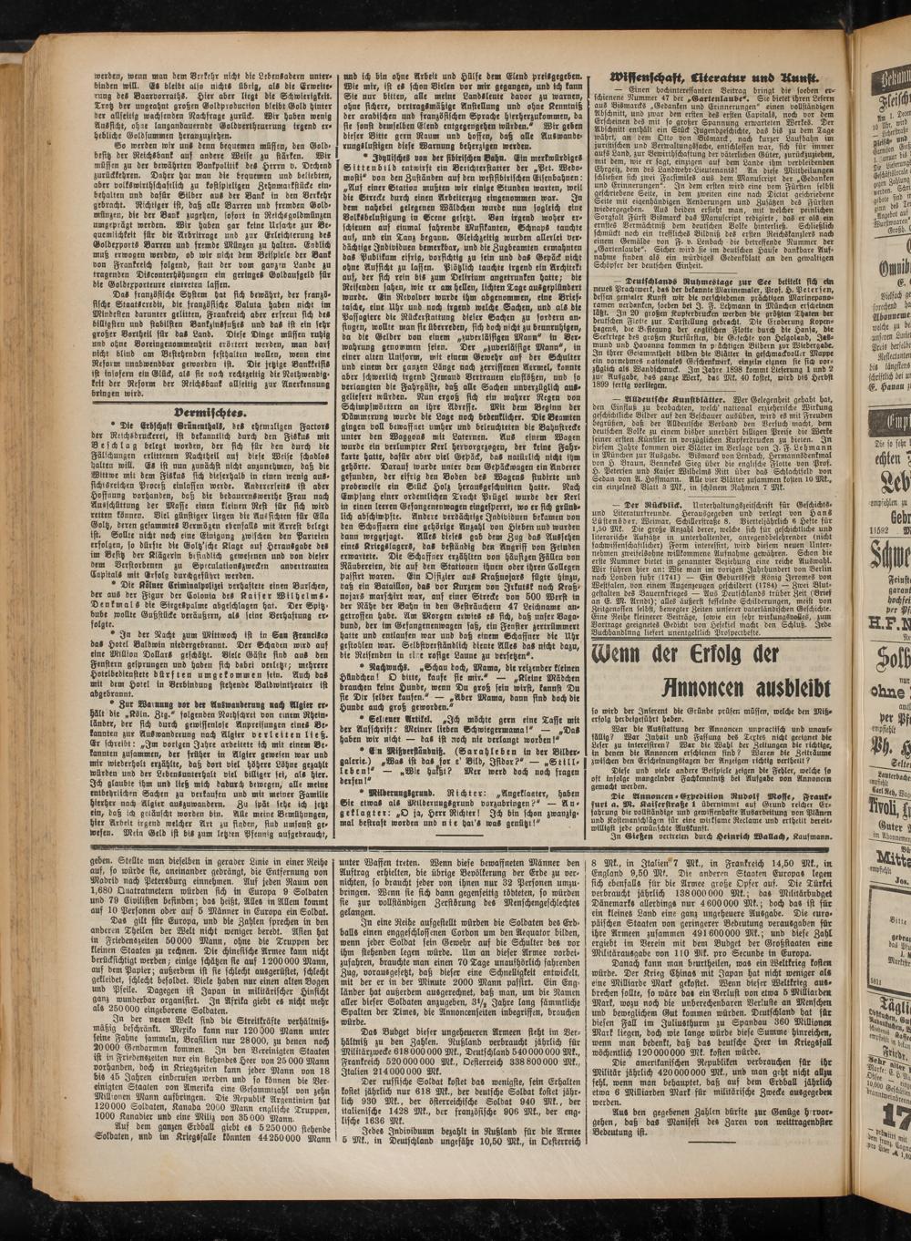 Die amerikanischen Republiken verbrauchen für ihr Militär jährlich 420000000 Mk., und man geht nicht allzu fehl, wenn man behauptet, daß auf dem Erdball jährlich etwa 6 Milliarden Mark für mllitärische Zwecke ausgegeden werden.