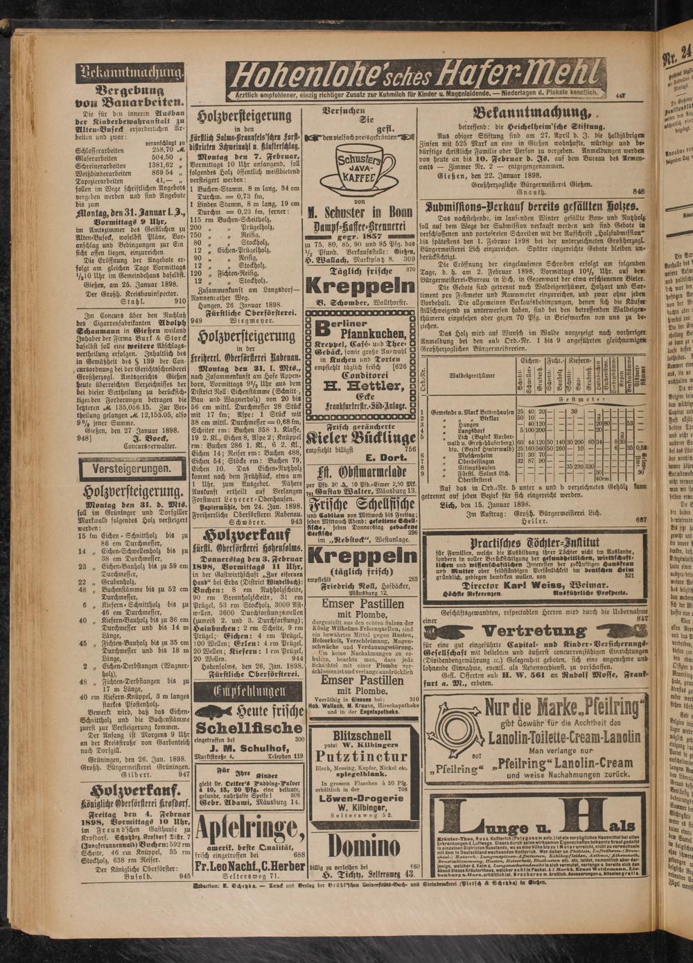 Freitag den 4. Februar 1898, Vormittags 10 Uhr, im Freund'schen Gasthause zu Krofdorf. Schvtzbez. Krofdorf Distr. 7 OungfttQnnenroolt.) Buchen. 592 rm Scheite, 46 rm Knüppel, 35 rm Stockholz, 638 rm Reiser.