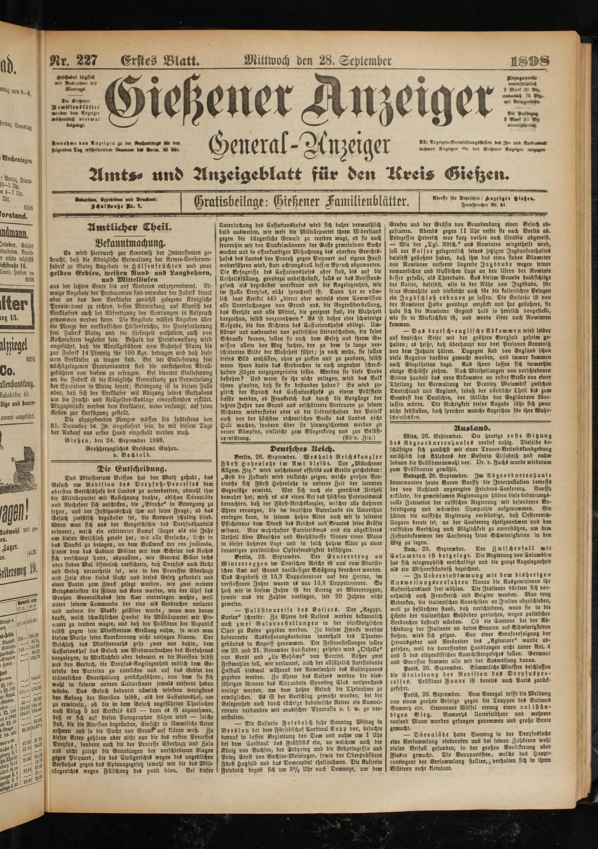 Nr. 227l§rstes Blatt.Mittwoch den 28. September L8S8