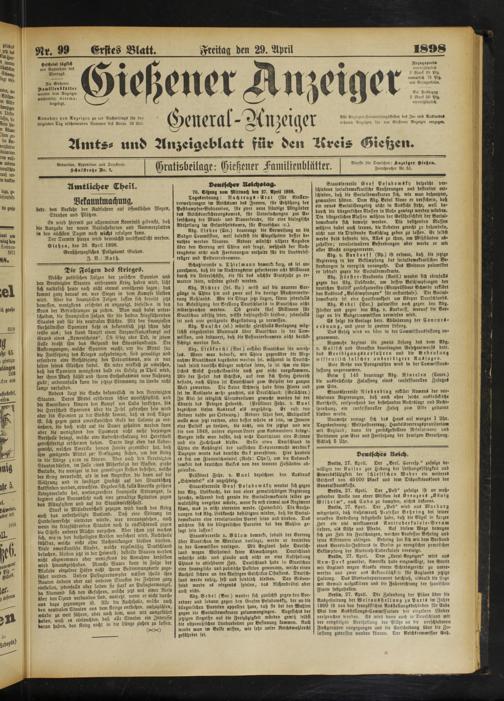 Die Gießcncr AamirikubtLller werden dem Anzeiger wöchentliü) vierma. beigelegt.