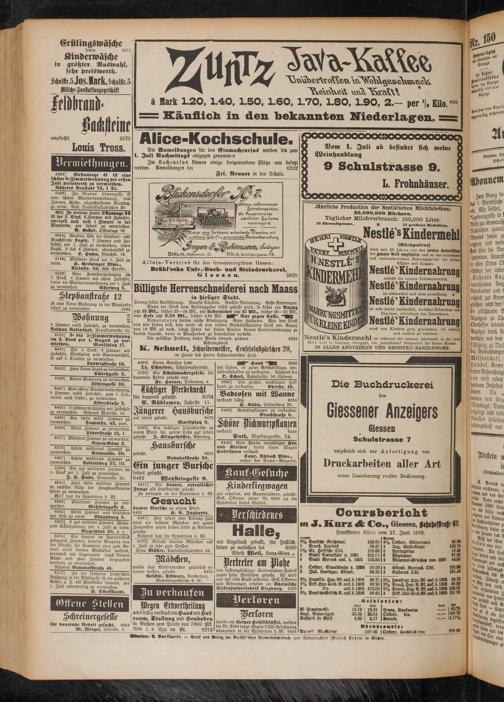 Nestle’s Kindermehl ist während der heissen Jahreszeit, in der jede Milch bald in Gährung übergeht, ein „keimfreies" Nährmittel für kleine Kinder. IN ALLEN APOTHEKEN UND DROGUEN - HANDLUNGEN.