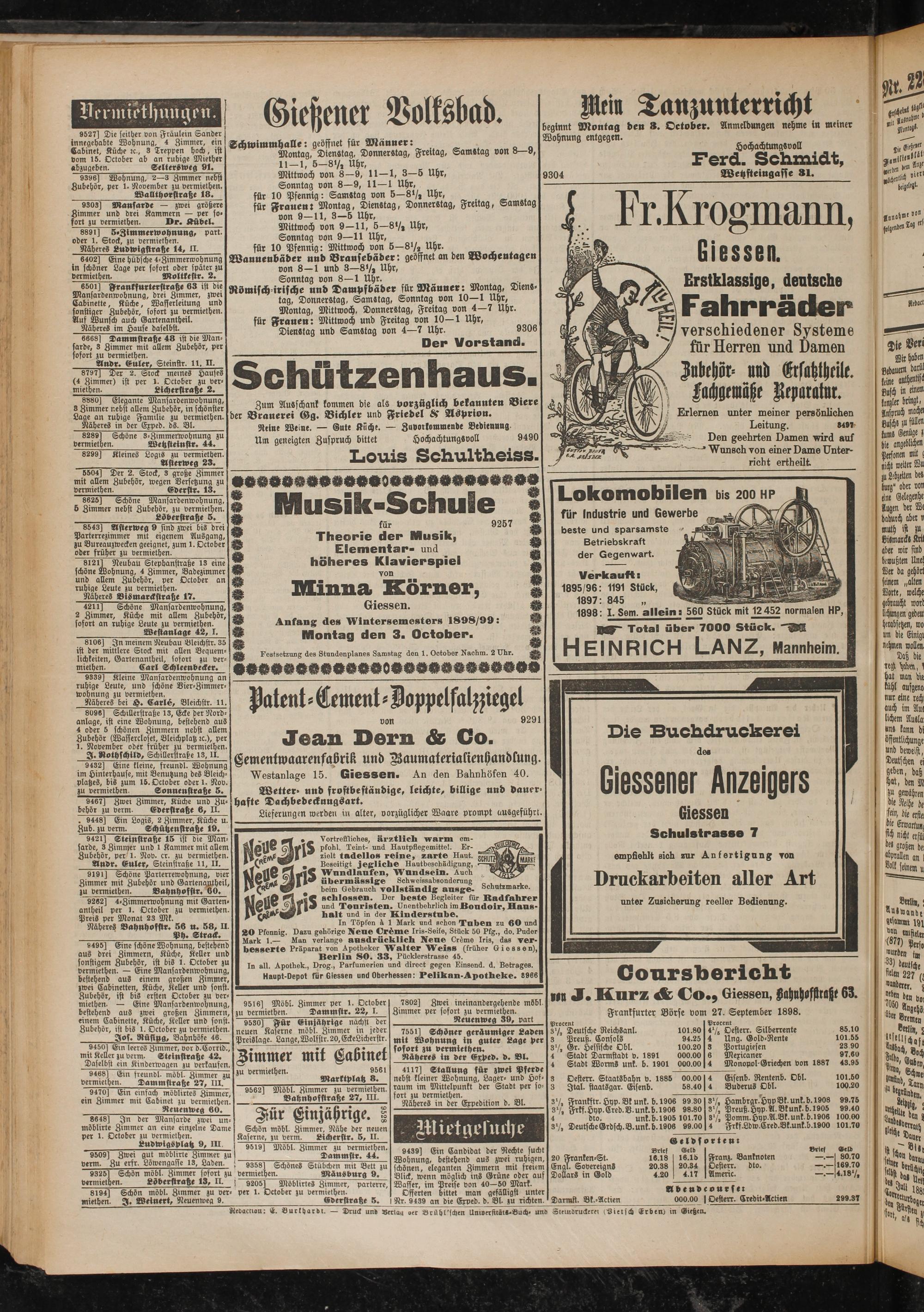 Frankfurter Börse vom 27. September 1898.