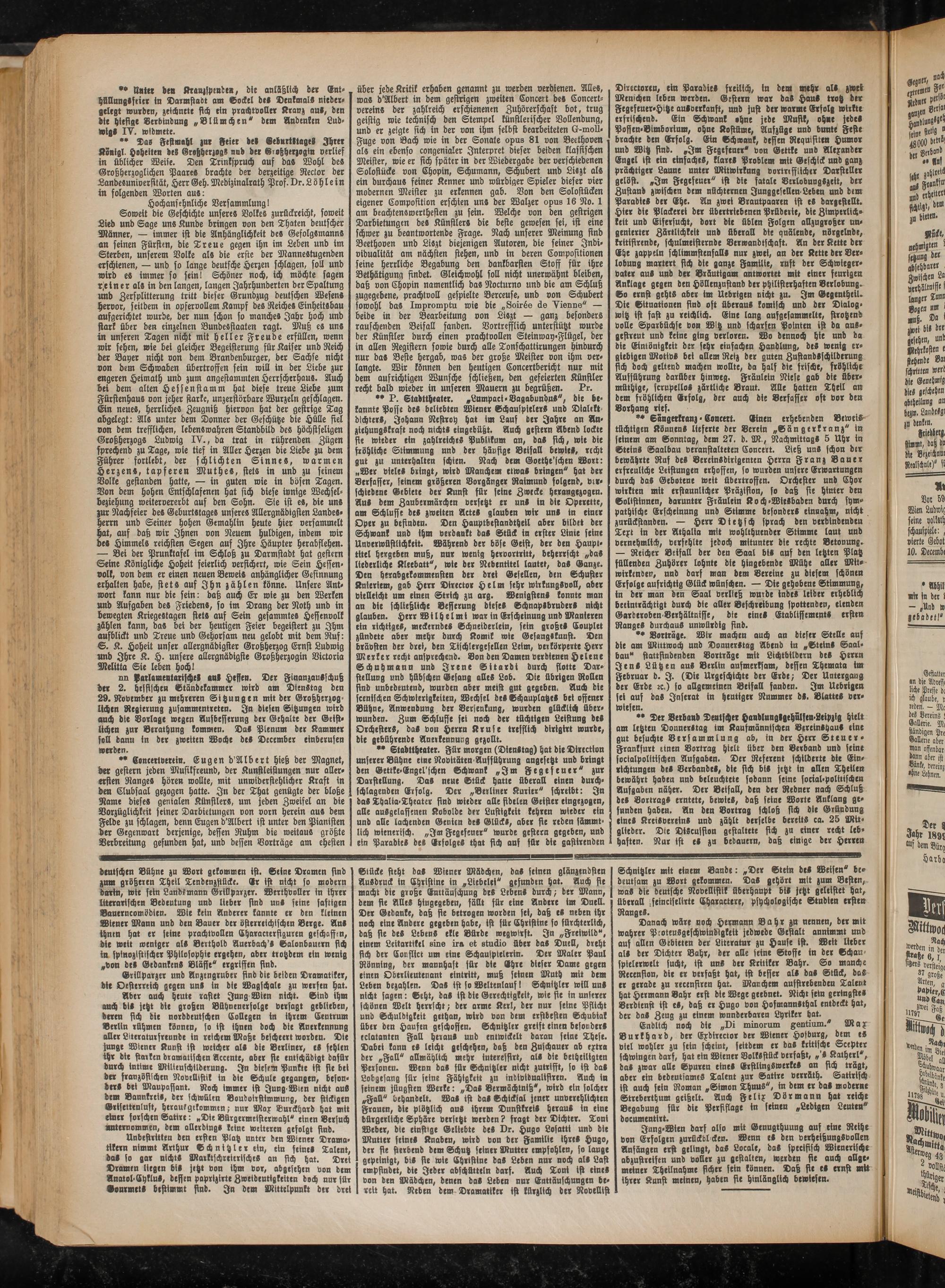 *♦ Sangerkranz - Concert. Einen erhebenden Beweis tüchtigen Können! lieferte ber Verein „Sän gerkranz" in seinem am Sonntag, bem 27. b. M, Nachmittag! 5 Uhr in Stein! Saalbau veranstalteten Concert. Ließ un! schon der bewährte Ruf de! vereinlbirigenten Herrn Franz Bauer erfreuliche Leistungen erhoffen, so wurden unsere Erwartungen durch ba! Gebotene weit übertroffen. Orchester und Chor wirkten mit erstaunlicher Präzision, so baß sie hinter ben Solistinnen, darunter Fräulein Koch-Wiesbaden durch sym>- pathische Erscheinung unb Stimme besonder! einnahm, nicht zurückstanden. — Herr Dietzsch sprach ben verbtnbenbeu Text in ber Athalia mit wohlthuenber Stimme laut und vernehmlich, versehlte jedoch mitunter die rechte Betonung. — Reicher Beifall ber den Saal bl! auf den letzten Platz füllenden Zuhörer lohnte die hingebenbe Mühe aller Mit- wirkrnden, unb barf man bem Vereine zu diesem schönen Erfolge aufrichtig Glück wünschen. — Die gehobene Stimmung, in ber man ben Saal verließ wmbe indes leider erheblich beeinträchtigt durch die aller Beschreibung spottenden, elenden Garderoben Verhältnisse, die eines etabüfferneut! ersten Range! durchaus unwürdig find.