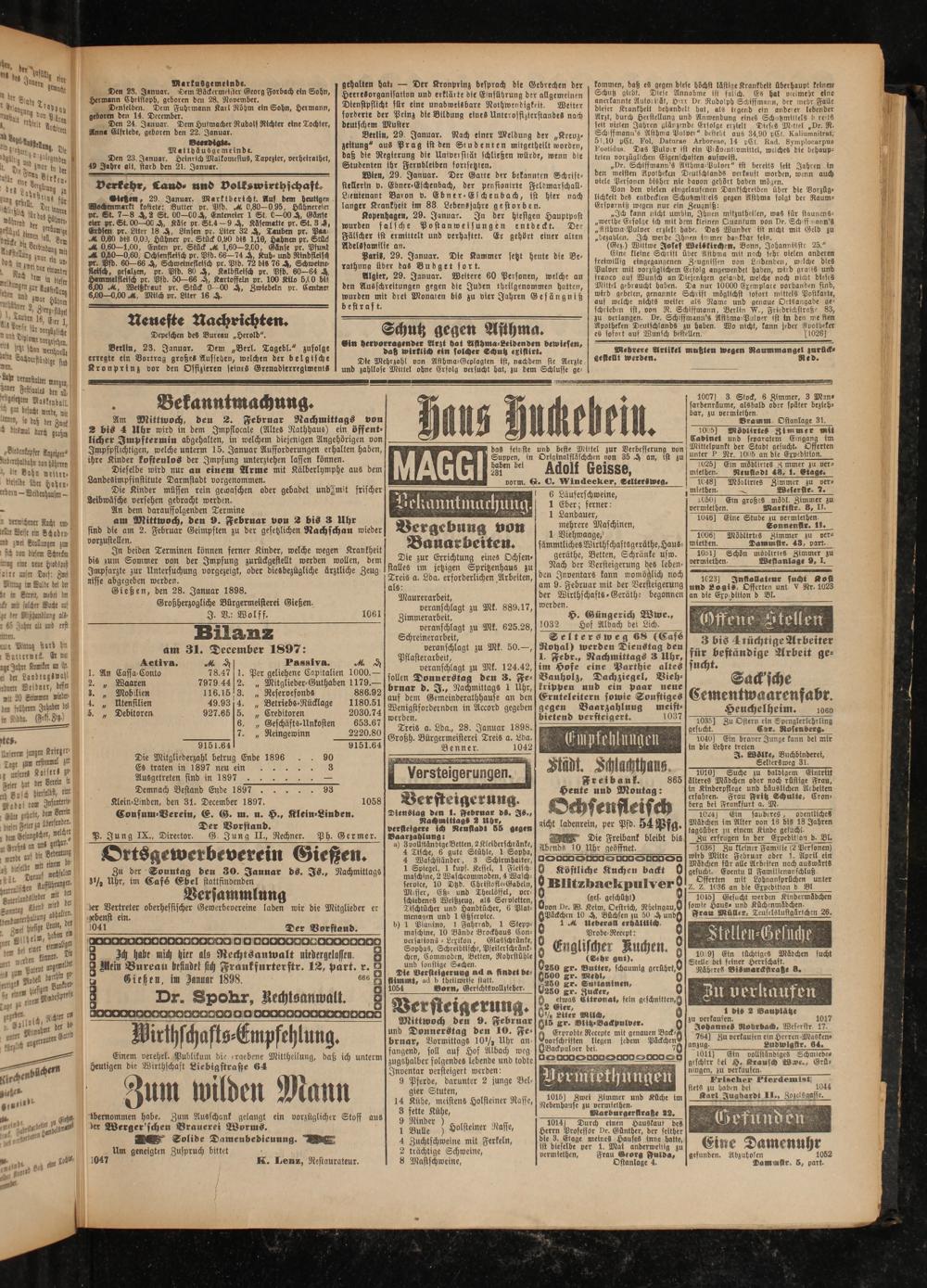 Treis a. Lda., 28. Januar 1898. Großh. Bürgermeisterei Treis a. Lda.