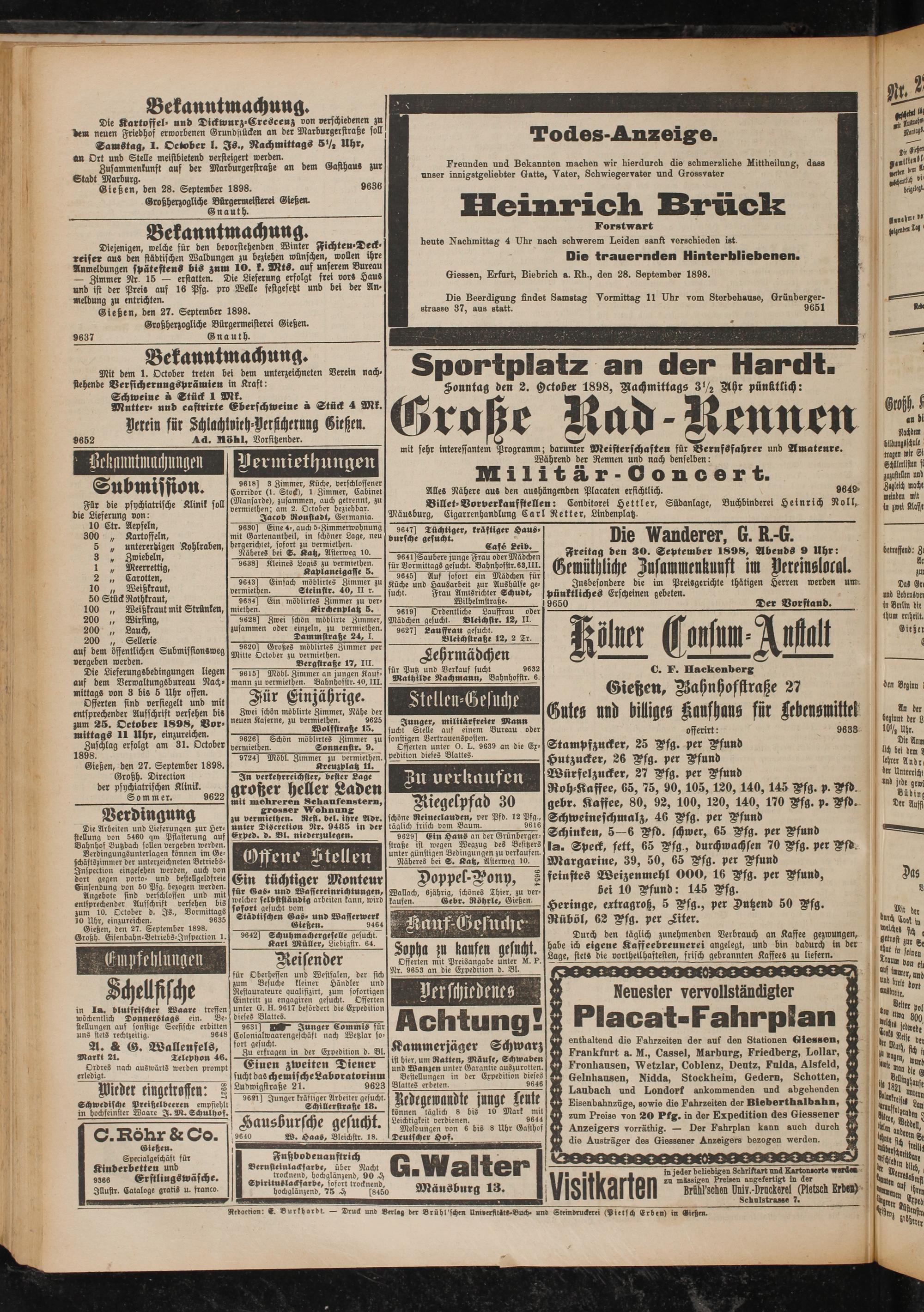 Giessen, Erfurt, Biebrich a. Rh., den 28. September 1898.
