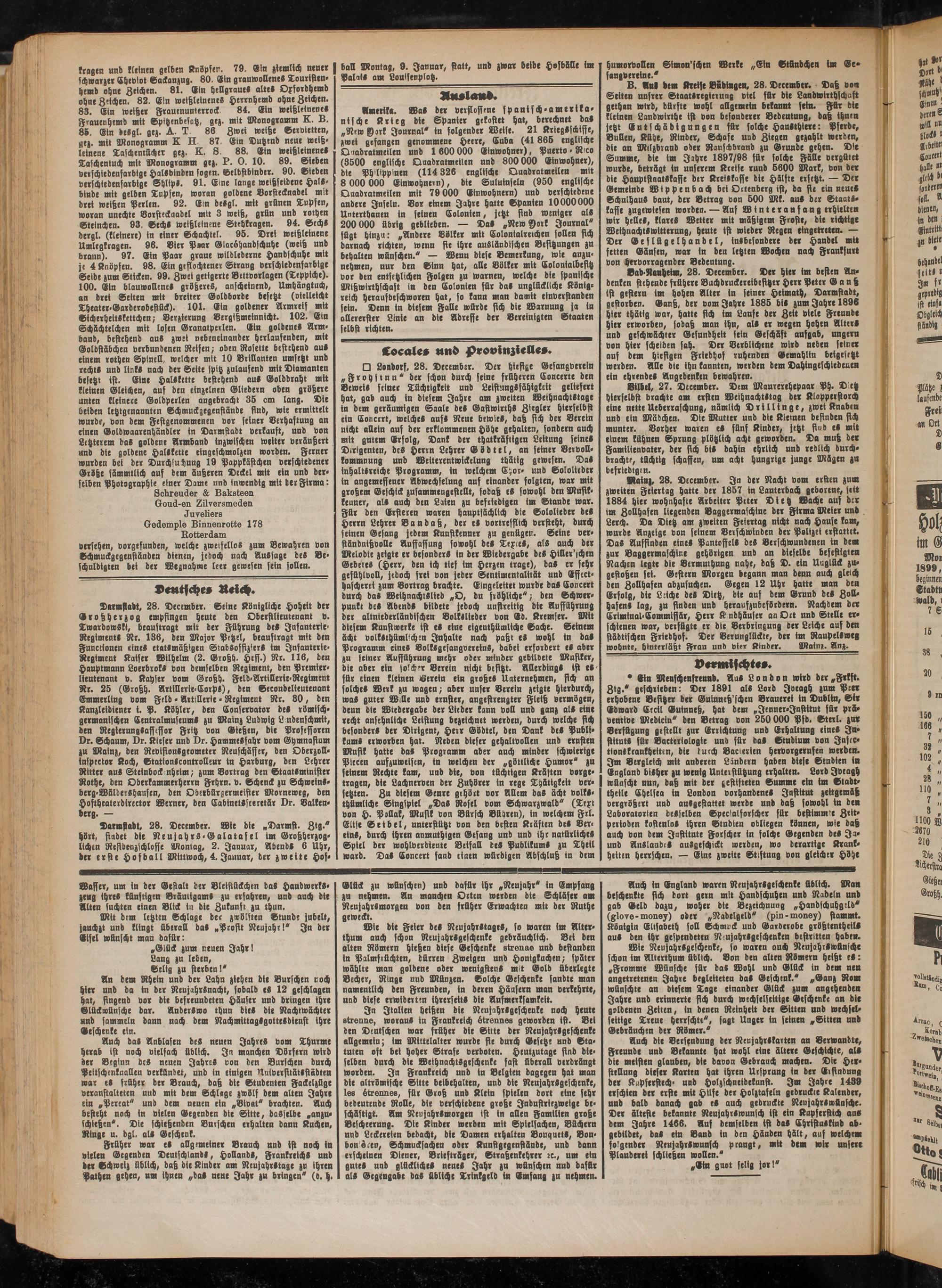 Darmstadt, 28. Decrmber. Seine Königliche Hoheit der Großherzog empfingen heute den Oberstlieutenaut v. TwardowSki, beauftragt mit der Führung de» Infanterie' Regiment» Nr. 136, den Major Prtzel, beauftragt mit den Functionen eine» etat-mäßigen Stabsoffizier» tm Infanterie- Regiment Kaiser Wilhelm (2. Großh. Hess.) Nr. 116, den Hauptmann Loerbrok» von demselben Regiment, den Premier- lteutenant v. Kayser vom Großh. Feld-Artillerie-Regiment Nr. 25 (Großh. Artillerie-Corp»), den Secondelieutenant Emmerling vom Feld - Artillerie - Regiment Nr. 80, den Kanzleidiener t. P. Köhler, den Eonservator de» römischgermanischen Eentralmuseum» zu Mainz Ludwig L udenschmit, den RegterungSaffcffor Fritz von Gießen, die Profefforeu Dr. Schaum, Dr. Kieser und Dr. HammeSfahr vom Gymnasium zu Mainz, den RevifionSgeometer Neuschäffer, den Oberzoll- inspector Koch, StationScontrolleur tu Harburg, den Lehrer Ritter au» Steinbock nheim- zum Bortrag den StaatSmtnister Rothe, den Oberkammerherrn Frhrn. v. Schenck zu Schwein»- berg-WälderShansen, den Oderbürsermeister Morneweg, den Hoftheaterdirector Werner, den CabinetSsreretSr Dr. Balkenberg. —