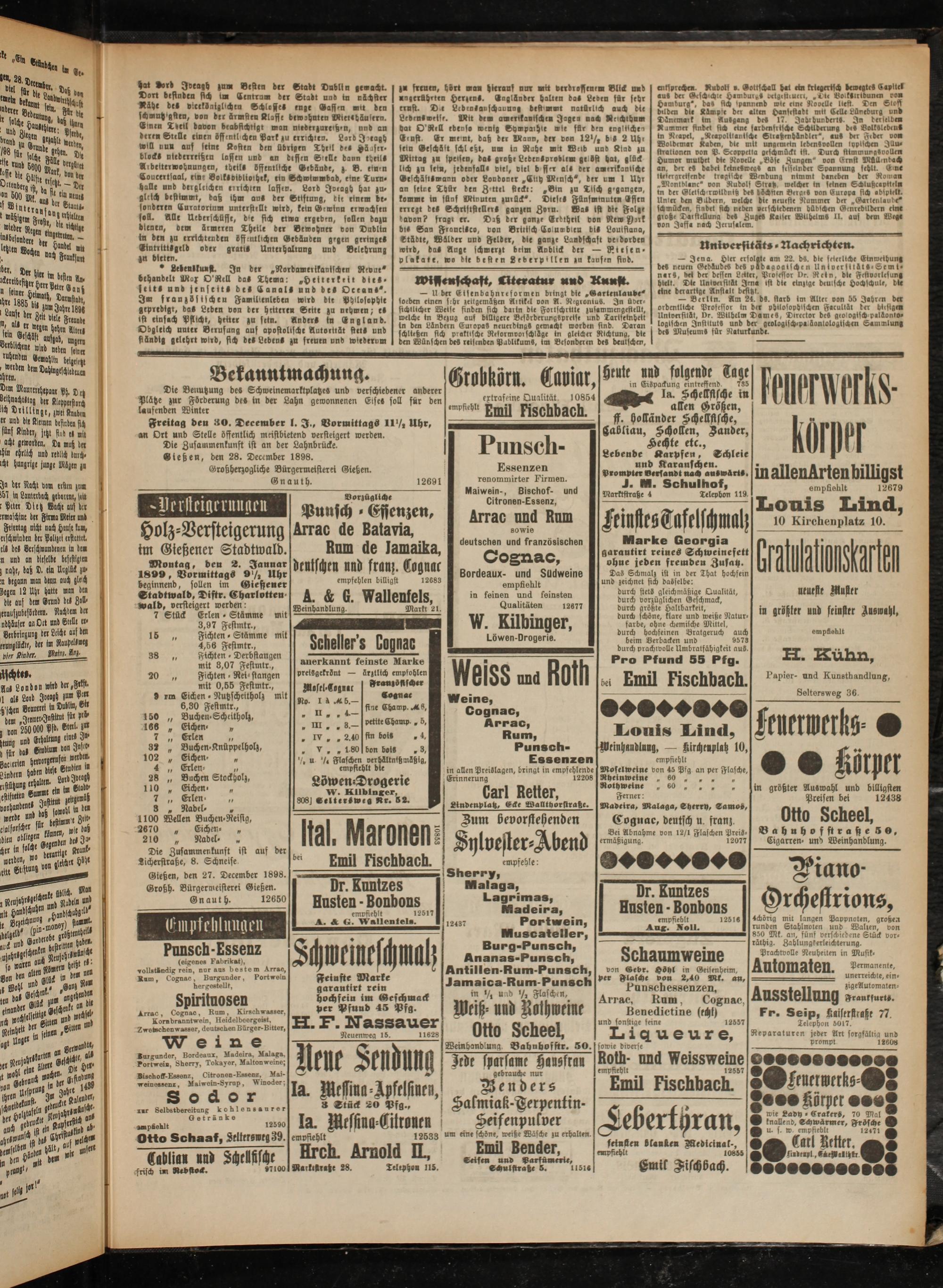 Gießen, den 27. December 1898. Großh. Bürgermeisterei Gießen.