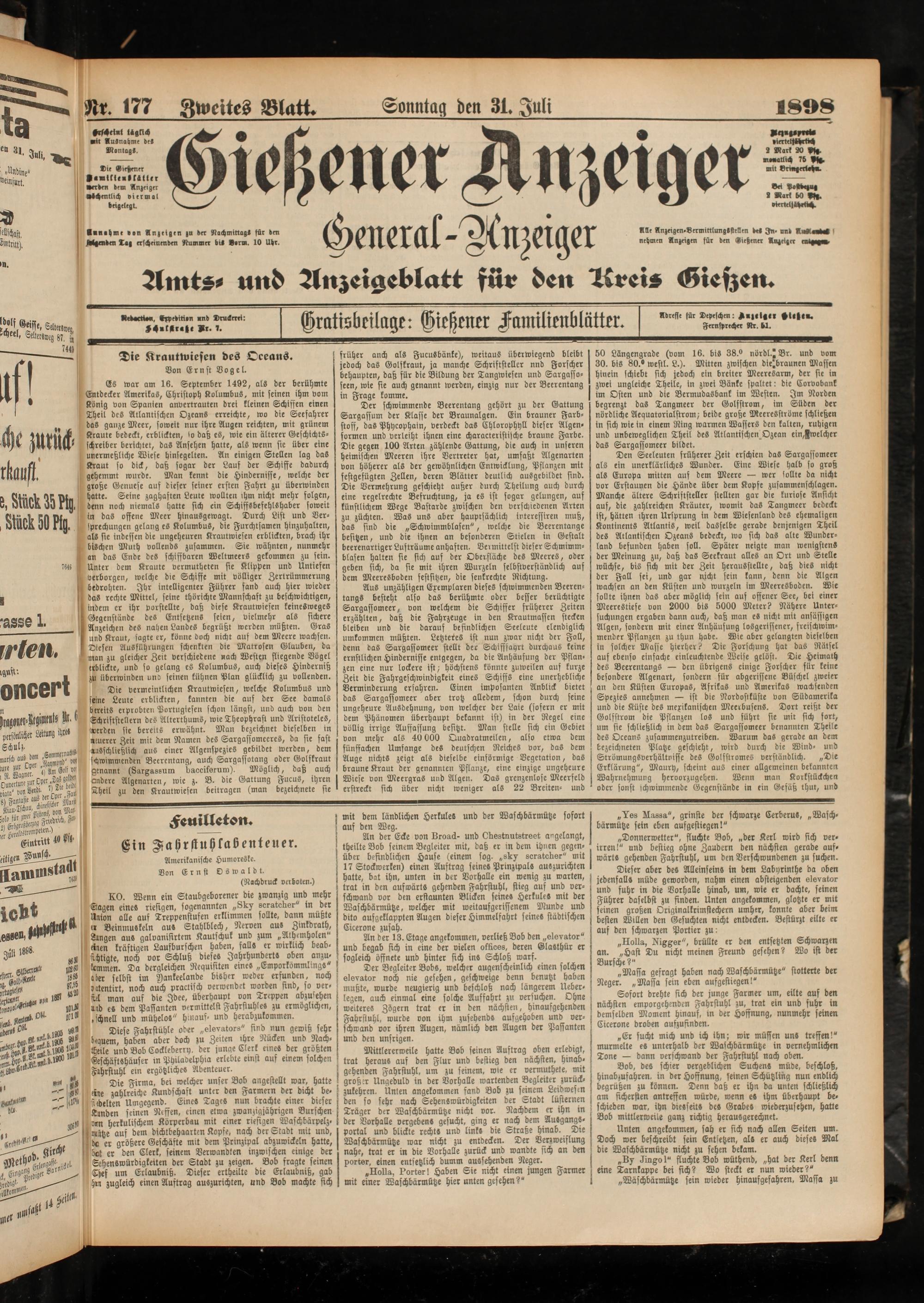 Nr 177 Zweites Blatt.Sonntag den 31. Juli