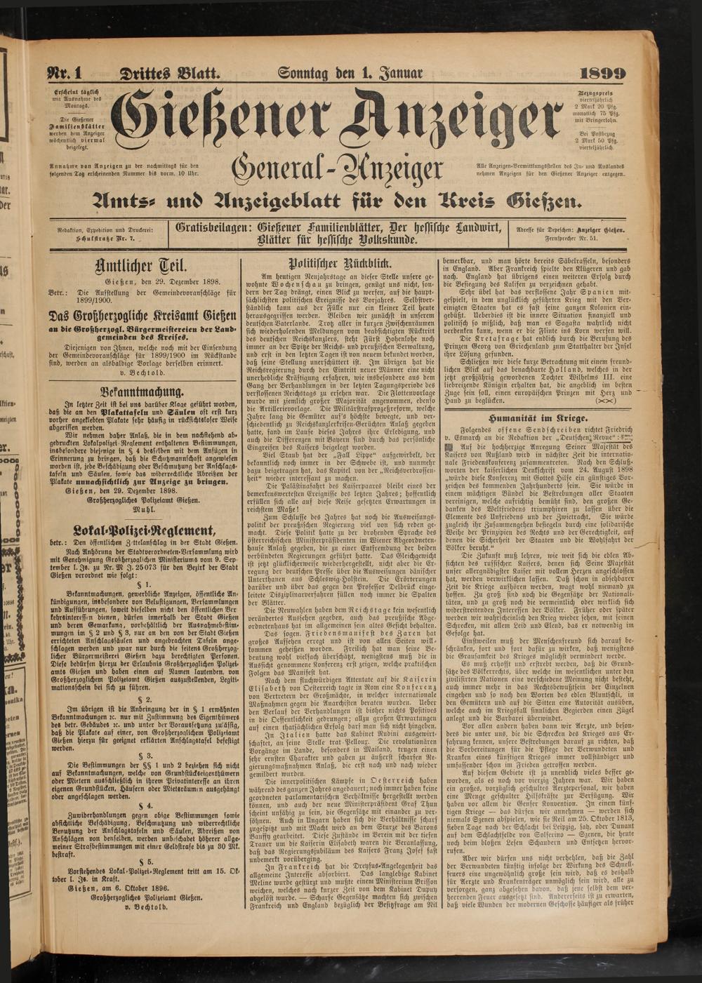Gratisbeilagen: Gießener Familienblätter, Der hessische Kandwirt, Klätter für hessische DotbsKunde.