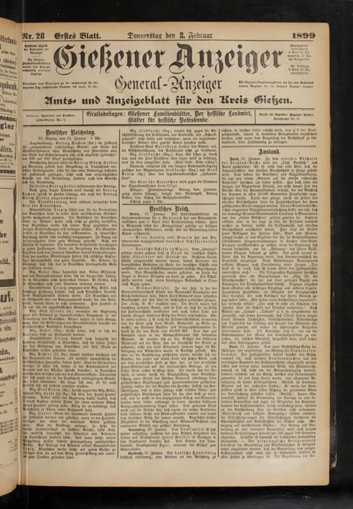 Gratisbeilagen: Gießener Familienblätter, Der hessische Landwirt, Klätter für hessische Volkskunde.