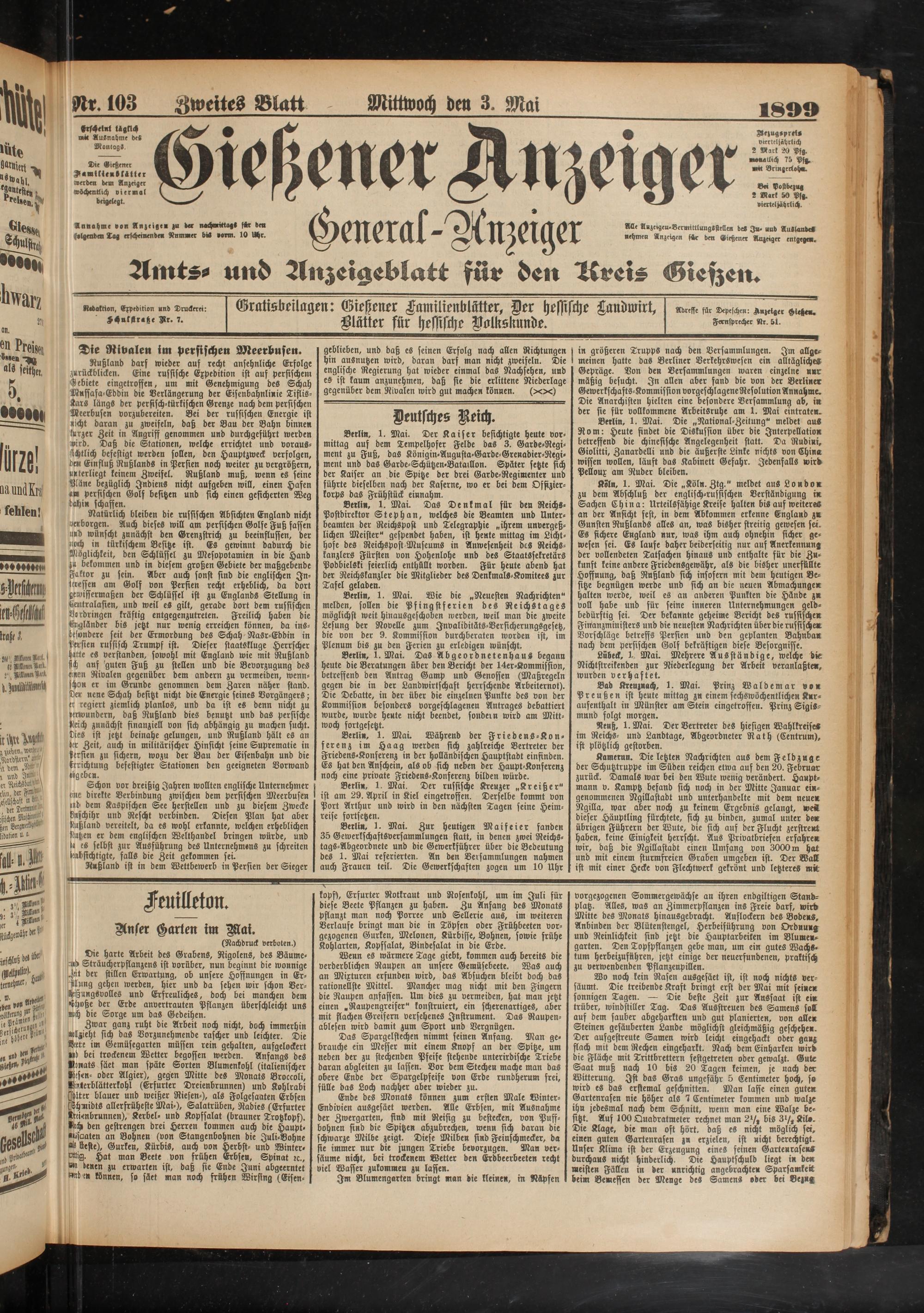 Gratisbeilagen: Gießener Familienblätter, Der hessische Landwirt, Ktätter für hessische Volkskunde.