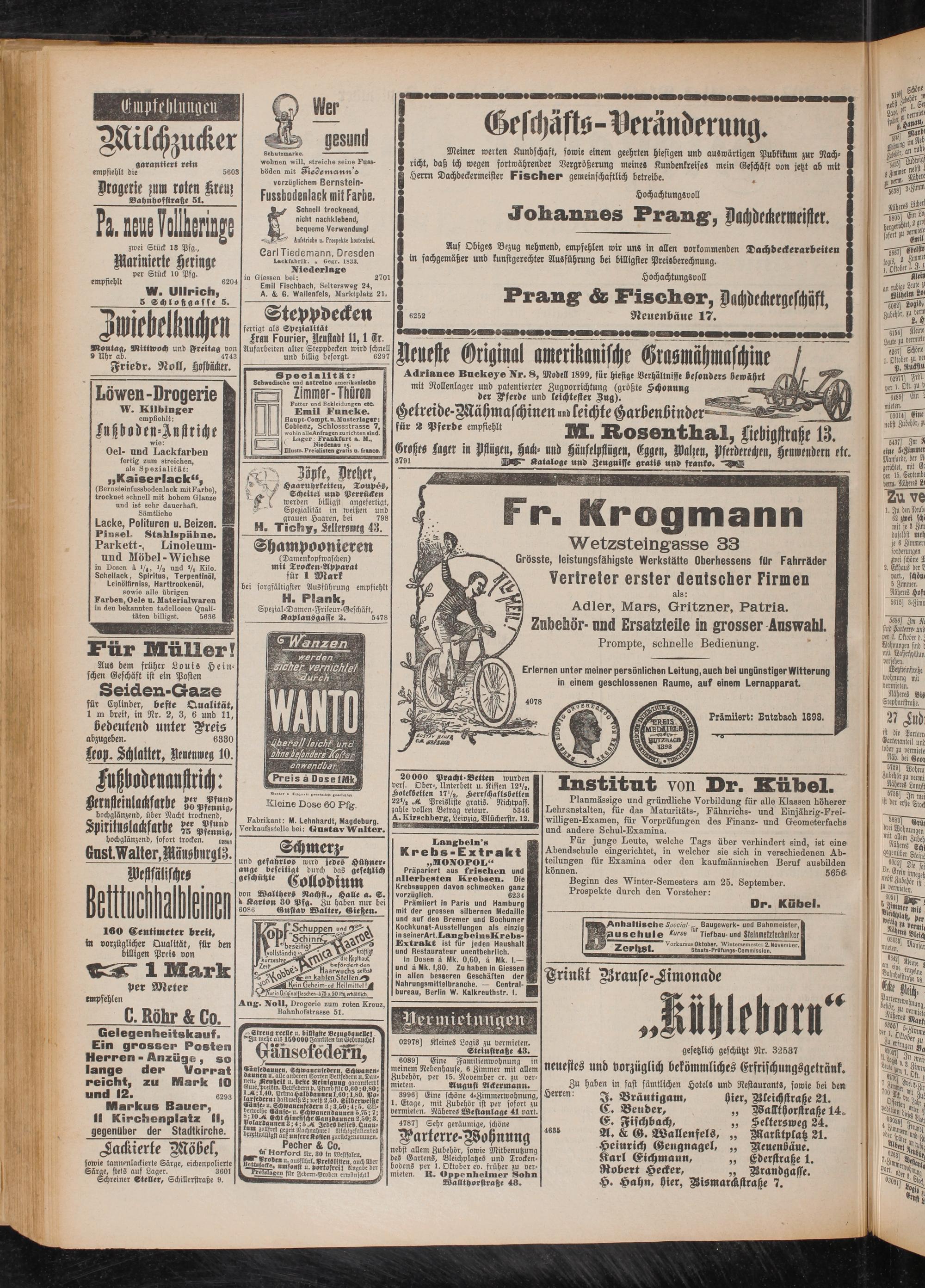 Meiner werten Kundschaft, sowie einem geehrten hiesigen und auswärtigen Pubkikum zur Nachricht, daß ich wegen fortwährender Vergrößerung meines Kundenkreises mein Geschäft von jetzt ab mit Herrn Dachdeckermeister Fischer gemeinschaftlich betreibe.