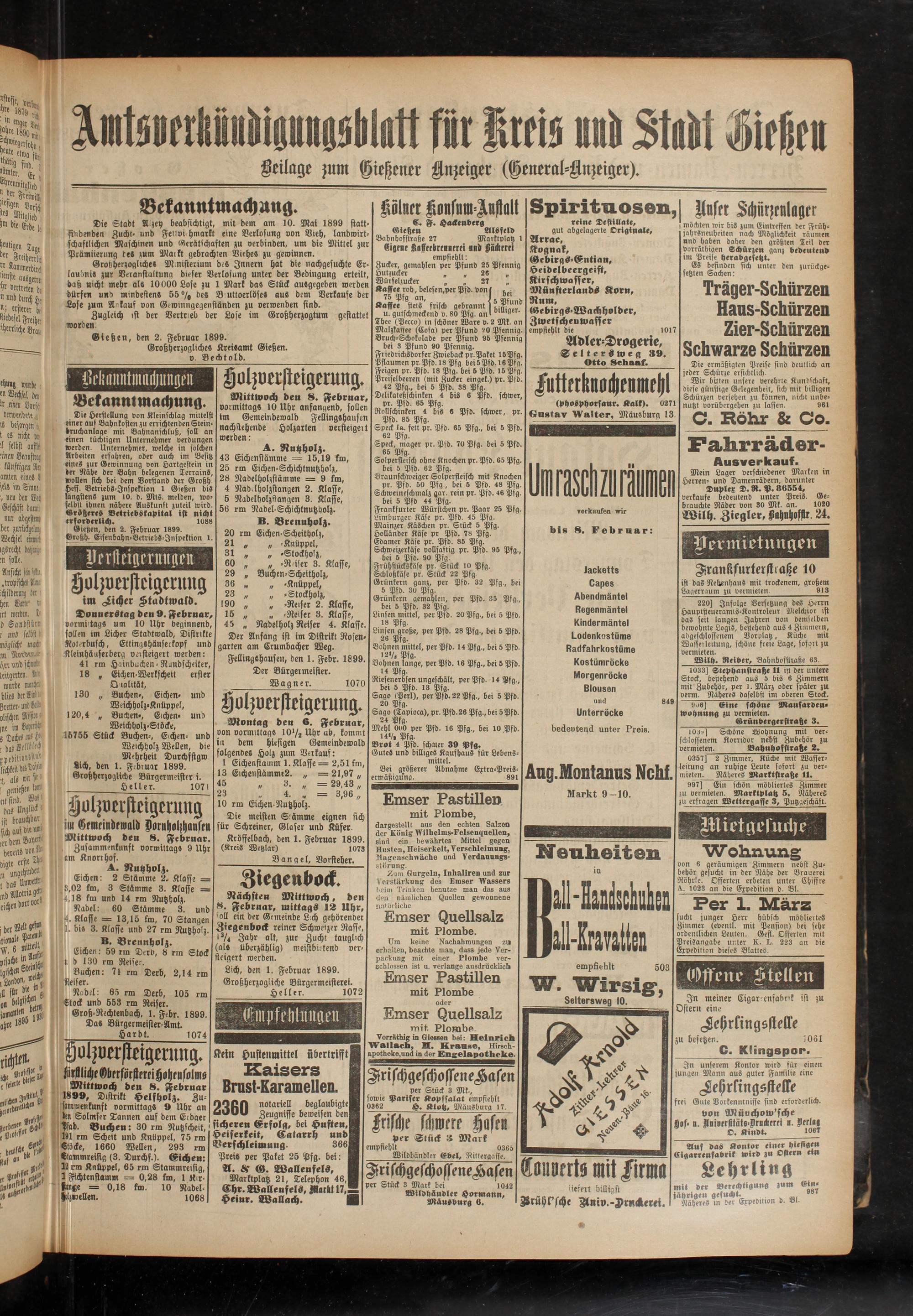 Lich, den 1. Februar 1899. schlossen ist u. verlange ausdrücklich Großherzogliche Bürgermeisterei. MlUSer Heller. 1072 mit