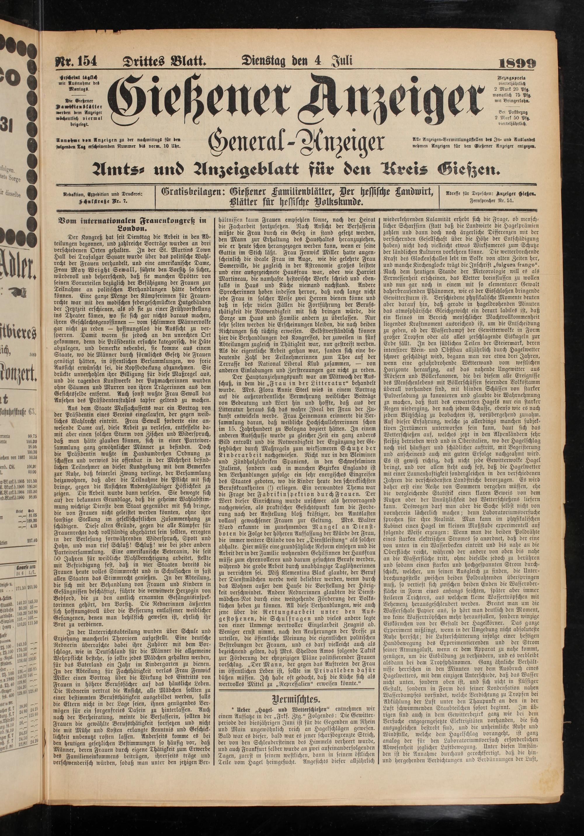 Adresse für Depeschen: Anzeiger Hieße»» Fernsprecher Nr. 51.