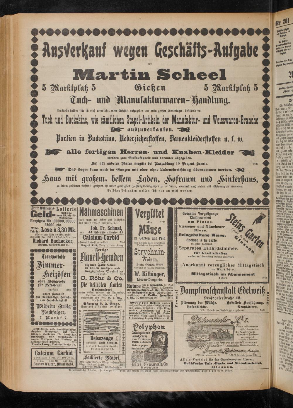 Verantwortlicher Redakteur: H. Stoegler. — Druck und Verlag der Brühl'schen UniderfttätS-Buch- und Sleindruckerei (Pietsch Erben) in Gießen,