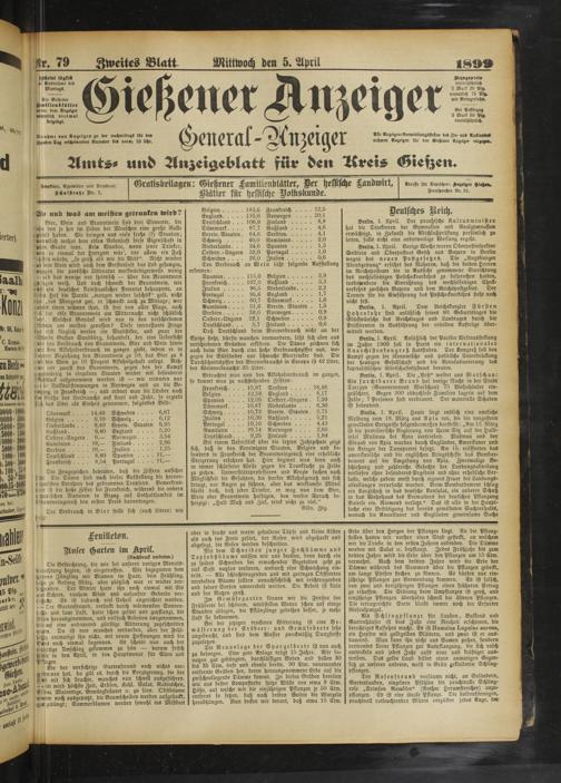 T>e Gießener It«ilien»lLtier iMbm dem Anzeiger Wtlcntlich viermal beigelegt.