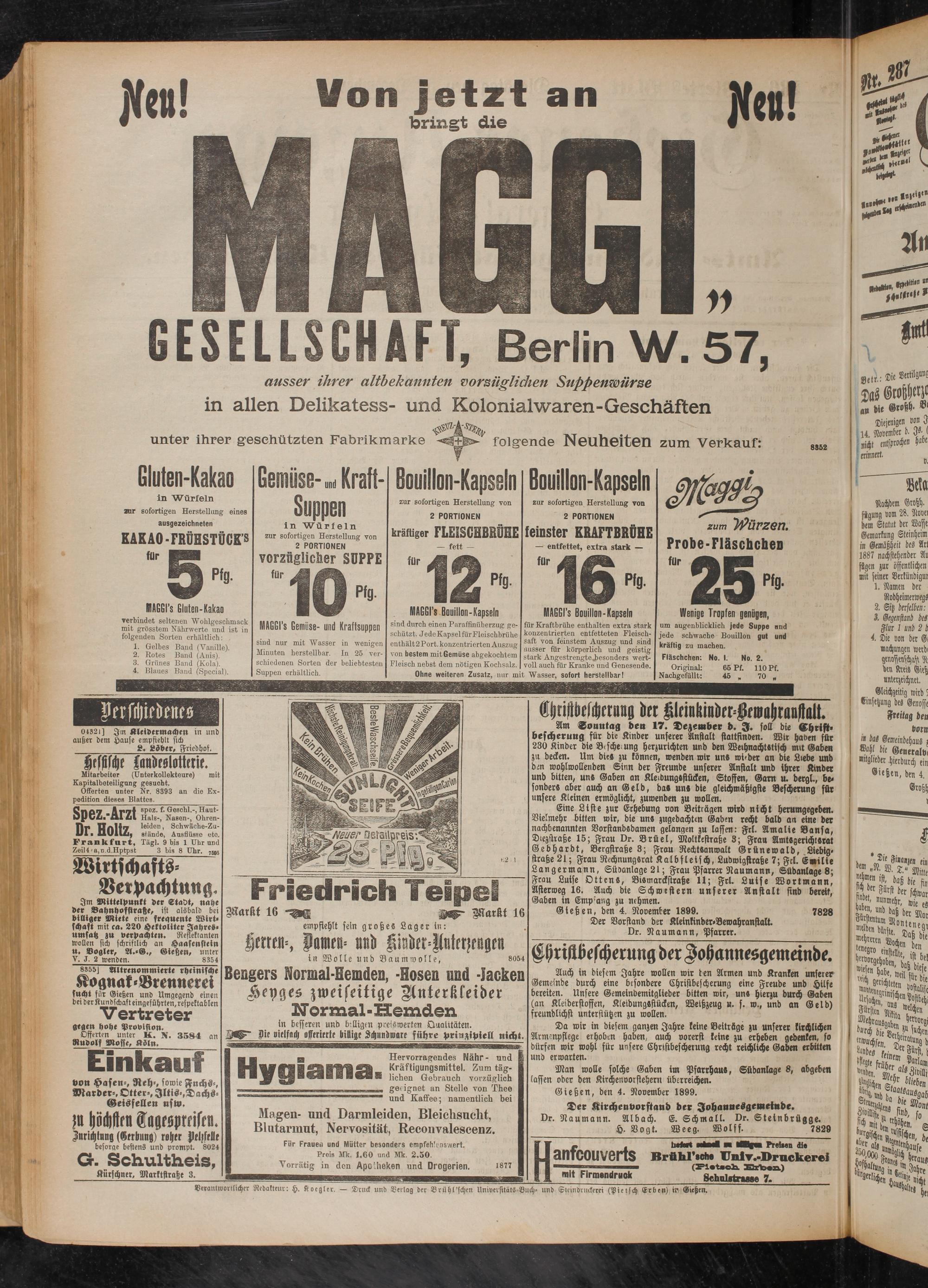 MAGGl’s Bouillon-Kapseln für Kraftbrühe enthalten extra stark konzentrierten entfetteten Fleischsaft von feinstem Auszug und sind äusser für körperlich und geistig stark Angestrengte besonders wertvoll auch für Kranke und Genesende, t Wasser, sofort herstellbar!