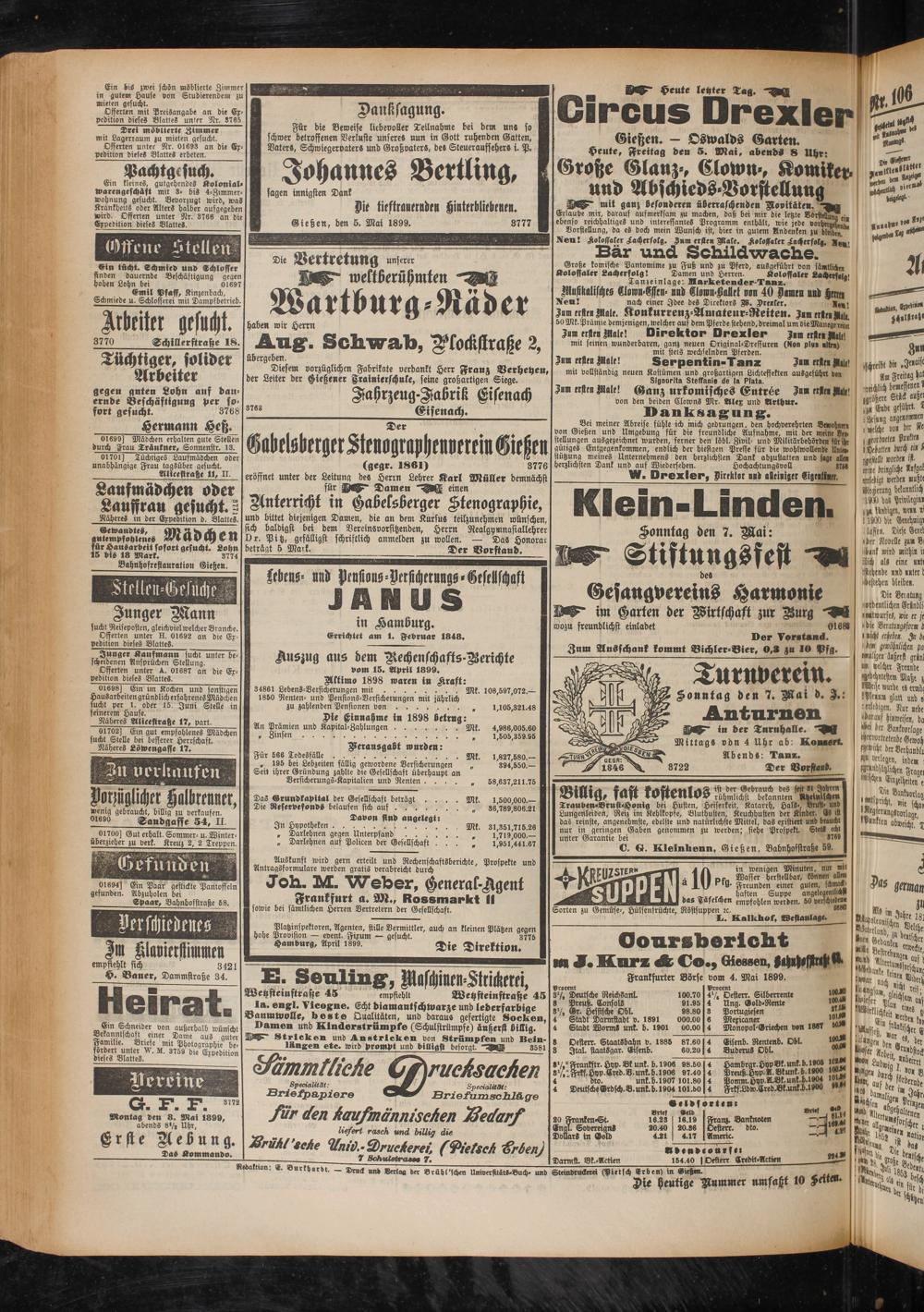 Montag den 8. Mai 1899, abends 87, Uhr,