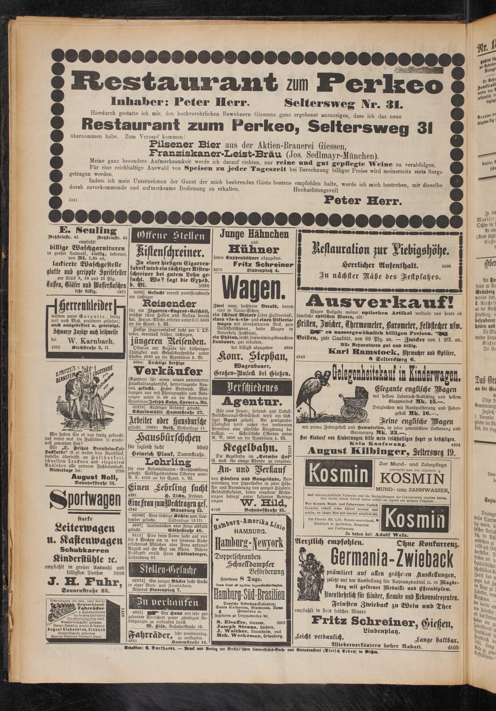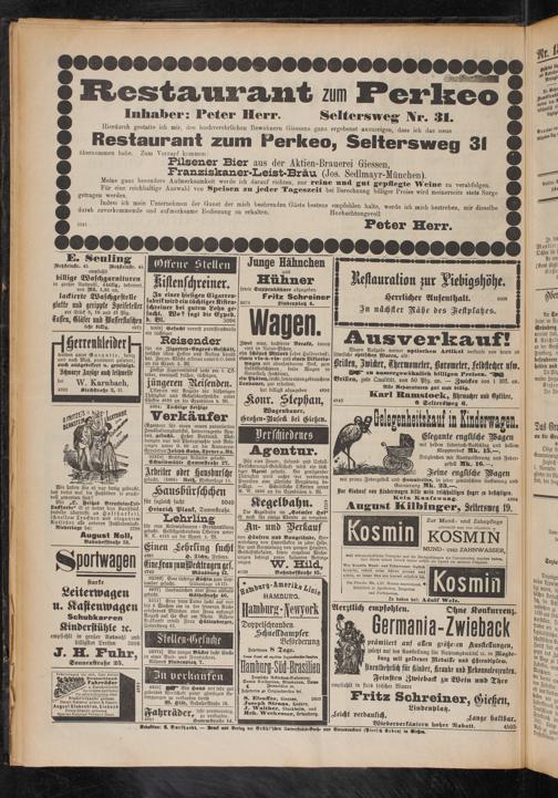 Hierdurch gestatte ich mir, den hochverehrlichen Bewohnern Giessens ganz ergebenst anzuzeigen, dass ich das neue
