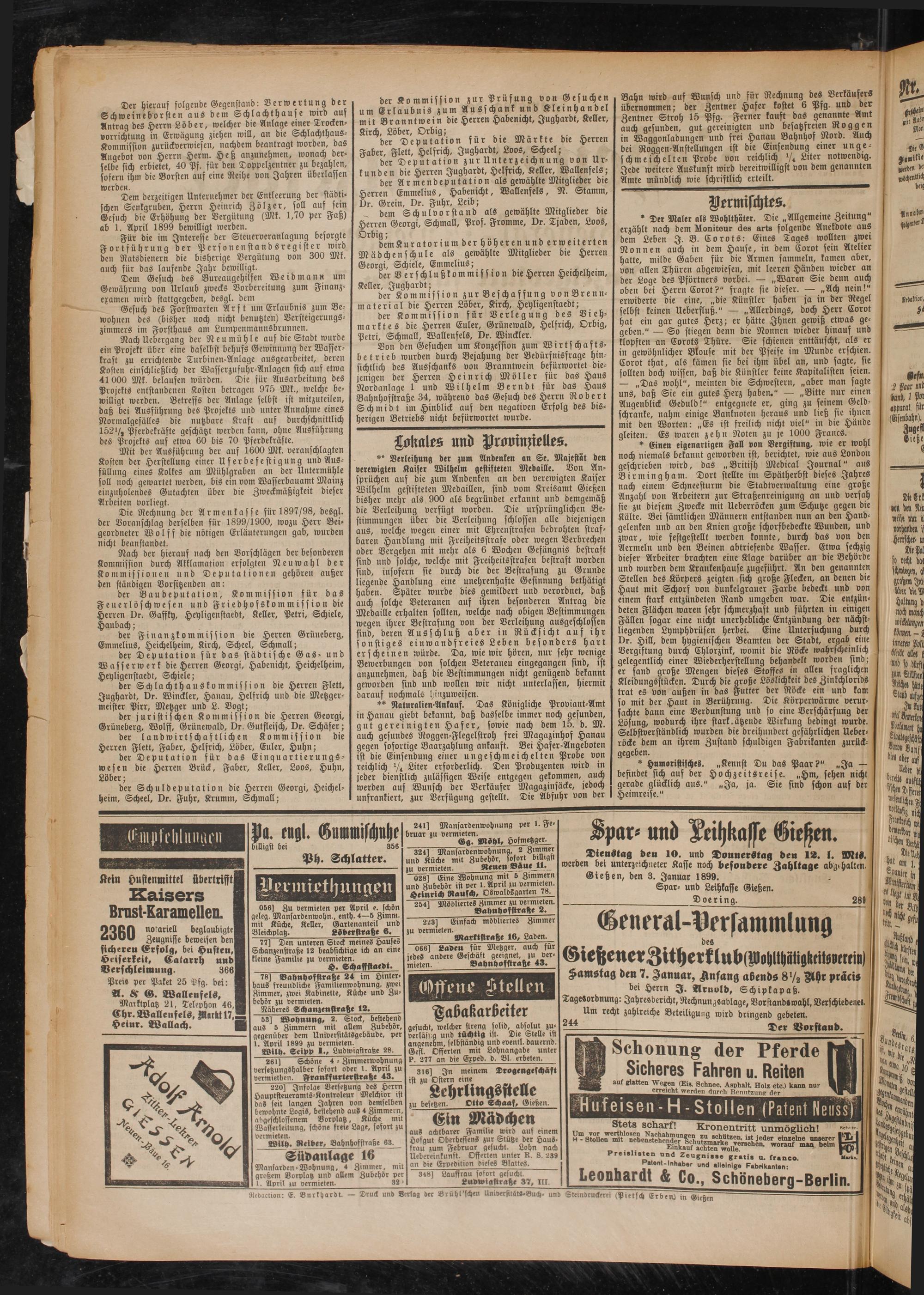 Die Rechnung der Armenkasse für 1897/98, desgl. der Voranschlag derselben für 1899/1900, wozu Herr Beigeordneter Wolff die nötigen Erläuterungen gab, wurden nicht beanstandet.