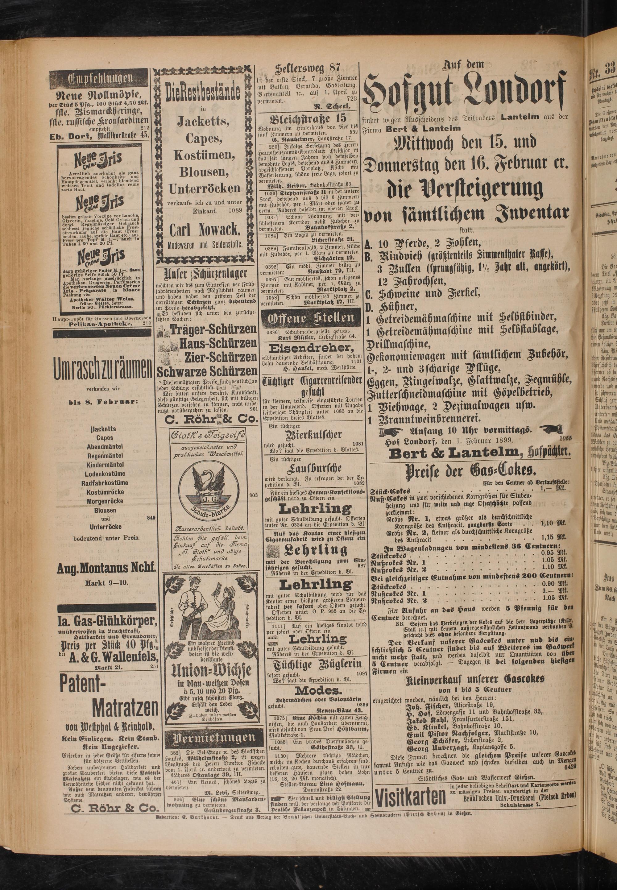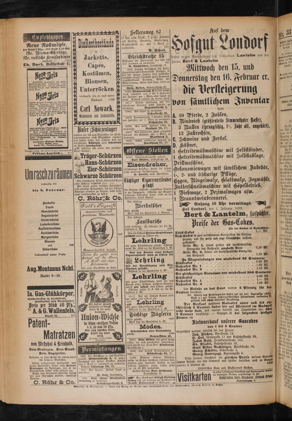 Hof Londorf, den 1. Februar 1899. 1065