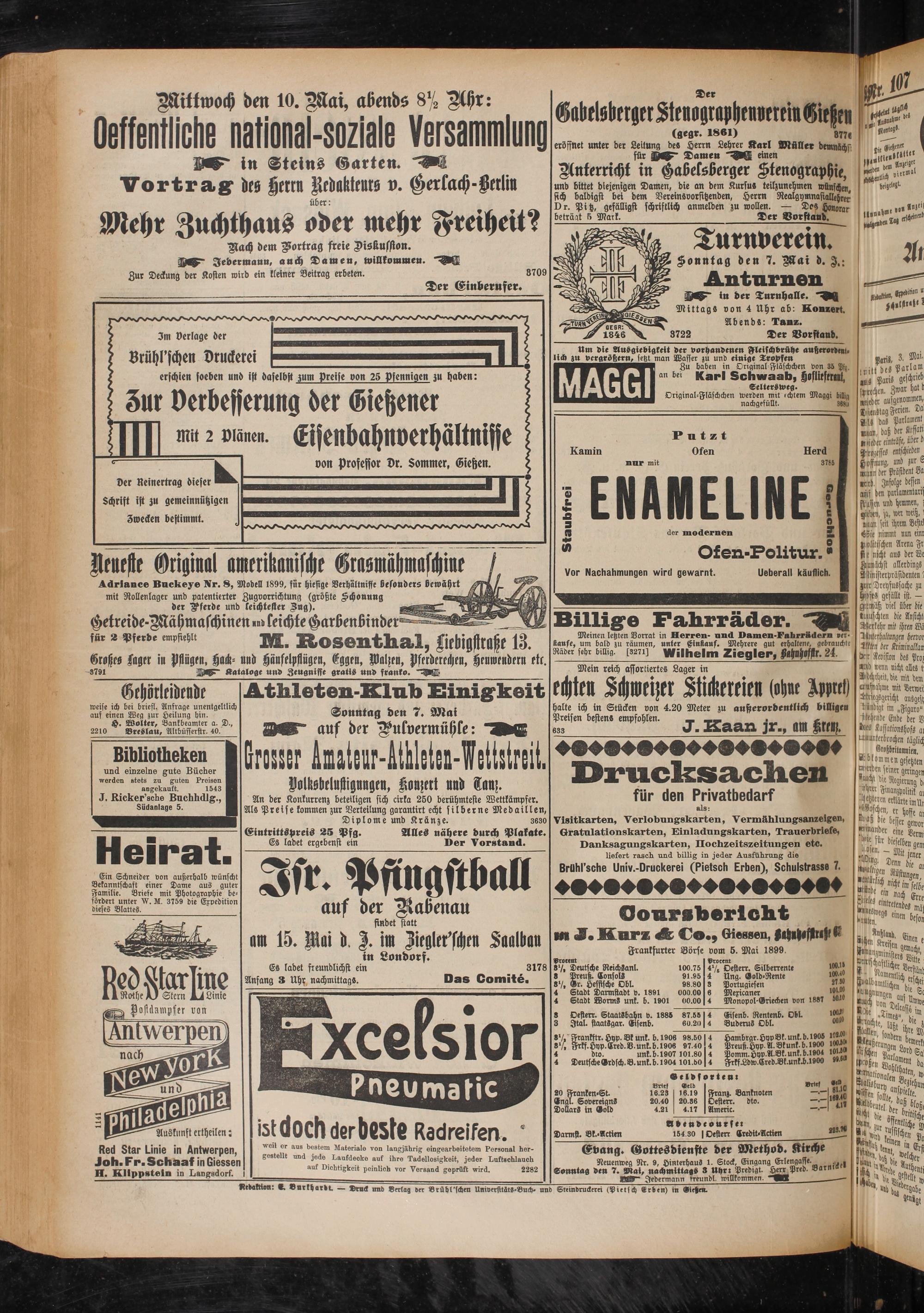 Red Star Linie in Antwerpen, Joh. Fr. Schaaf in Giessen H. Klippstein in Langsdorf.