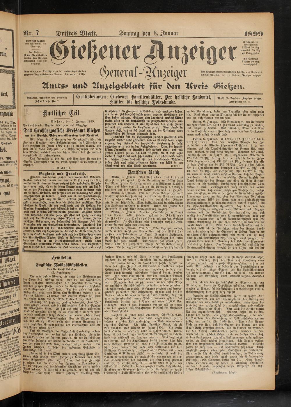 Dee Gießener Kamllieublätter werde» dem Anzeiger wöchentlich viermal beigelegt.