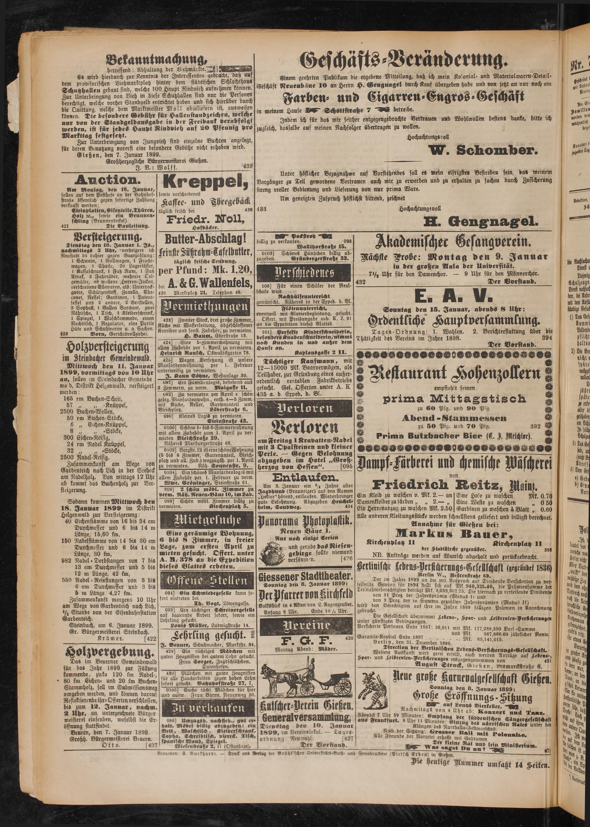 Dienstag den 10. Januar 1899, im Vereinrlokal. — Tagesordnung: Neuwahl. [427