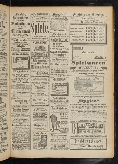 fertigt gut und billigst an, sowie alle sonstigen Haararbeiten, H. Tichy, Selterswkg 43. Spieh Gsstllschafls- und SklbSbeschöstiguugsspiele empfiehlt in großer Auswahl 8503 J. H. Fuhr, Tonnenstraste 25.