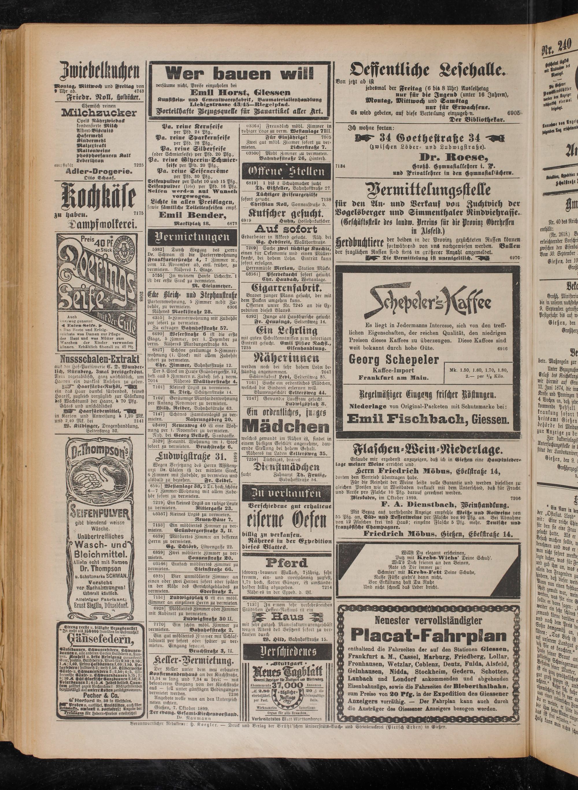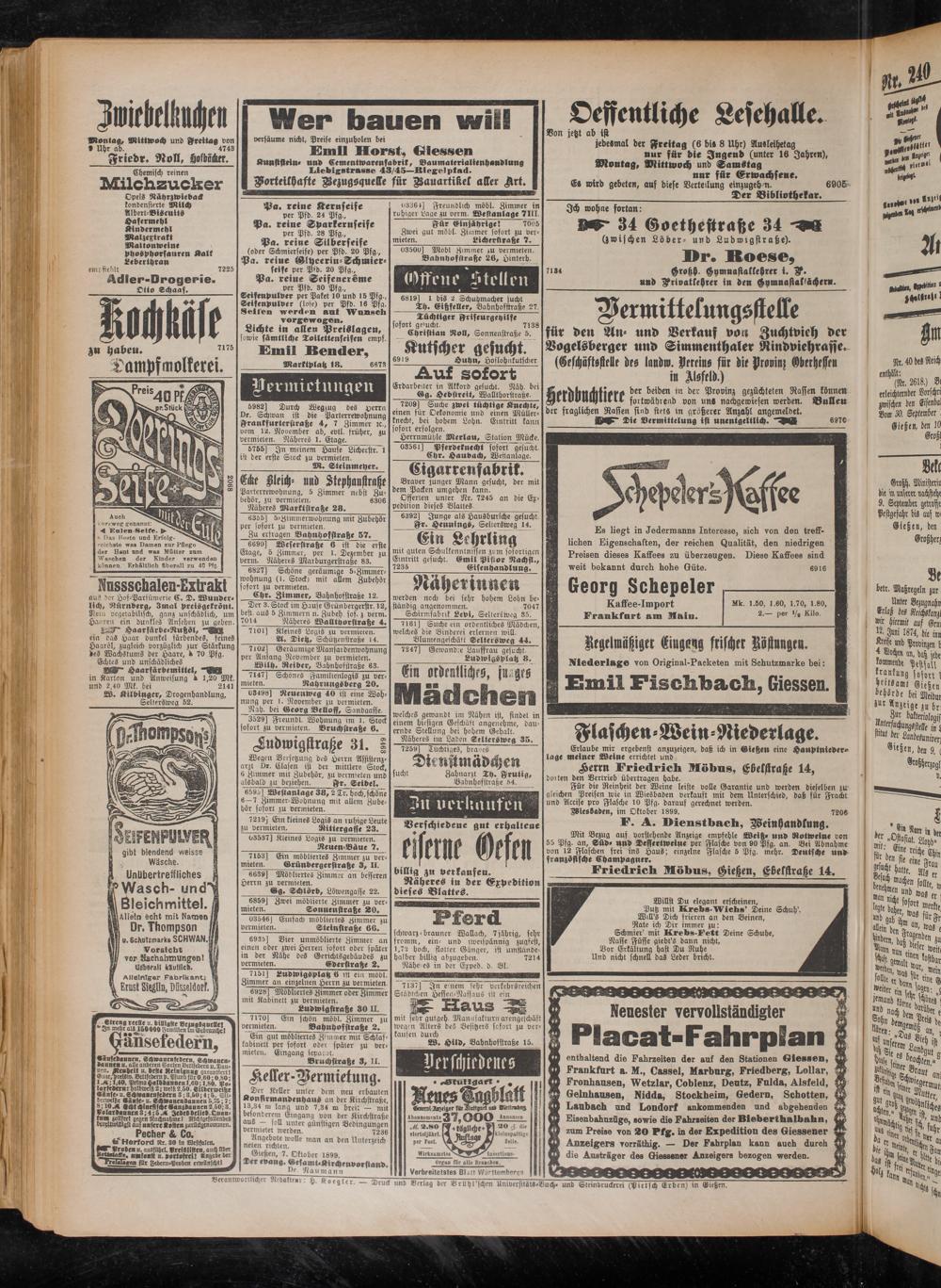 Wegen Beisetzung des Herrn Assistenzarzt Dr. Clasen ist der mittlere Stock, 6 Zimmer mit Zubehör, zu vermieten und alsbald zu beziehen. Ar. Seibel.