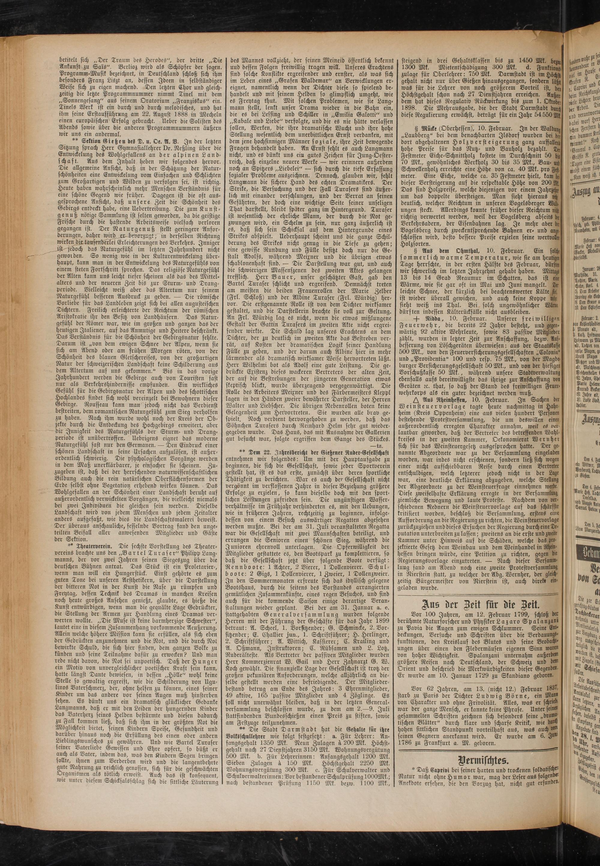 Vor 62 Jahren, am 13. (nicht 12.) Februar 1837, starb zu Paris der Dichter Ludwig Börne, ein Mann von Charakter und ohne Frivolität. Alles, was er schrieb war der ganze Mensch, er kannte keine Phrase. Unter feiner gesammelten Schriften zeichnen sich besonders seine „drania tischen Blätter" durch klare und scharfe Kritik, wie durch hohen sittlichen Standpunkt vorteilhaft aus, was auch ®on seinen Gegnern anerkannt wird. Er wurde am 6. J»"' 1786 zu Frankfurt a. M. geboren.