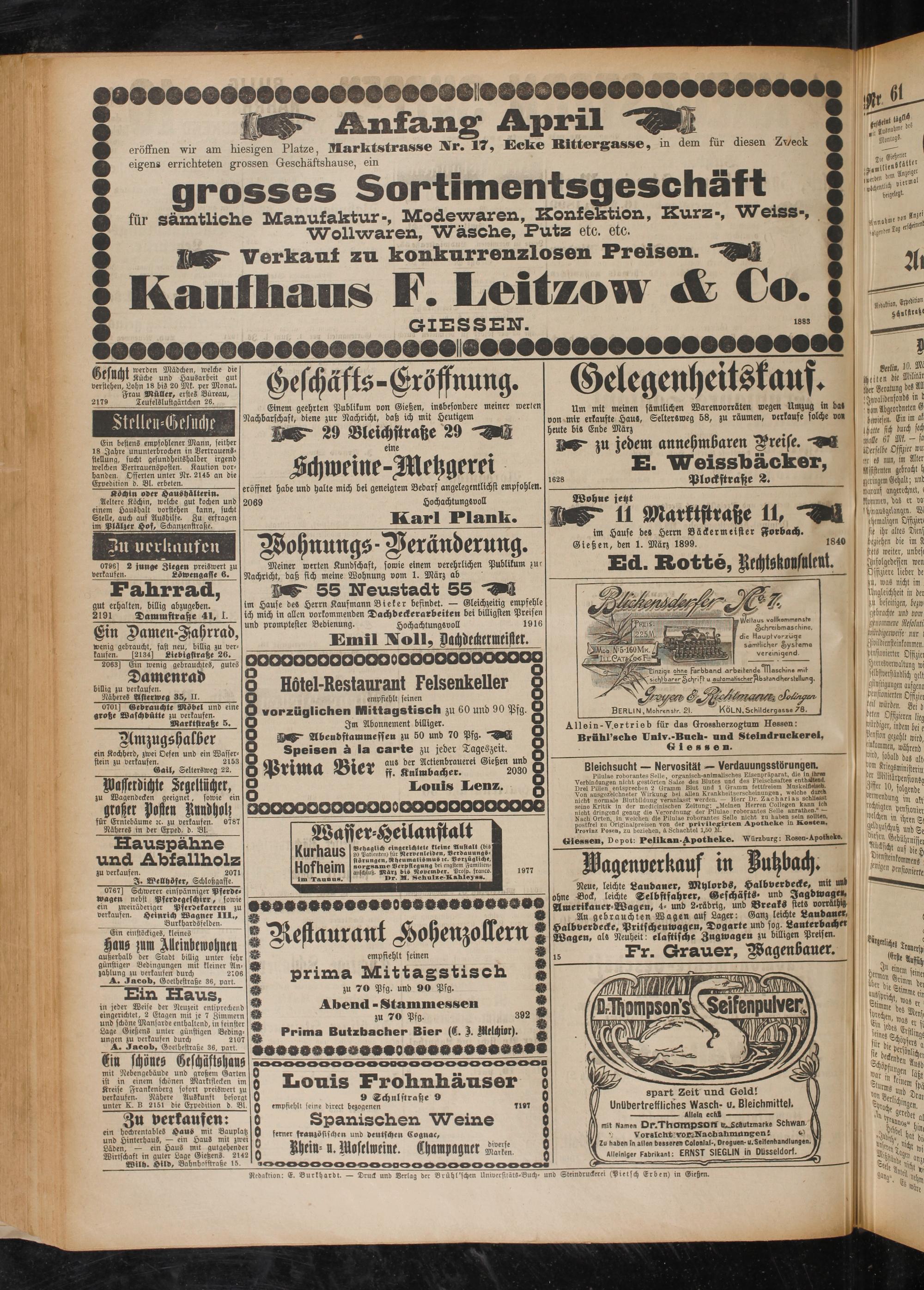 Gießen, den 1. Mär, 1899. l84v